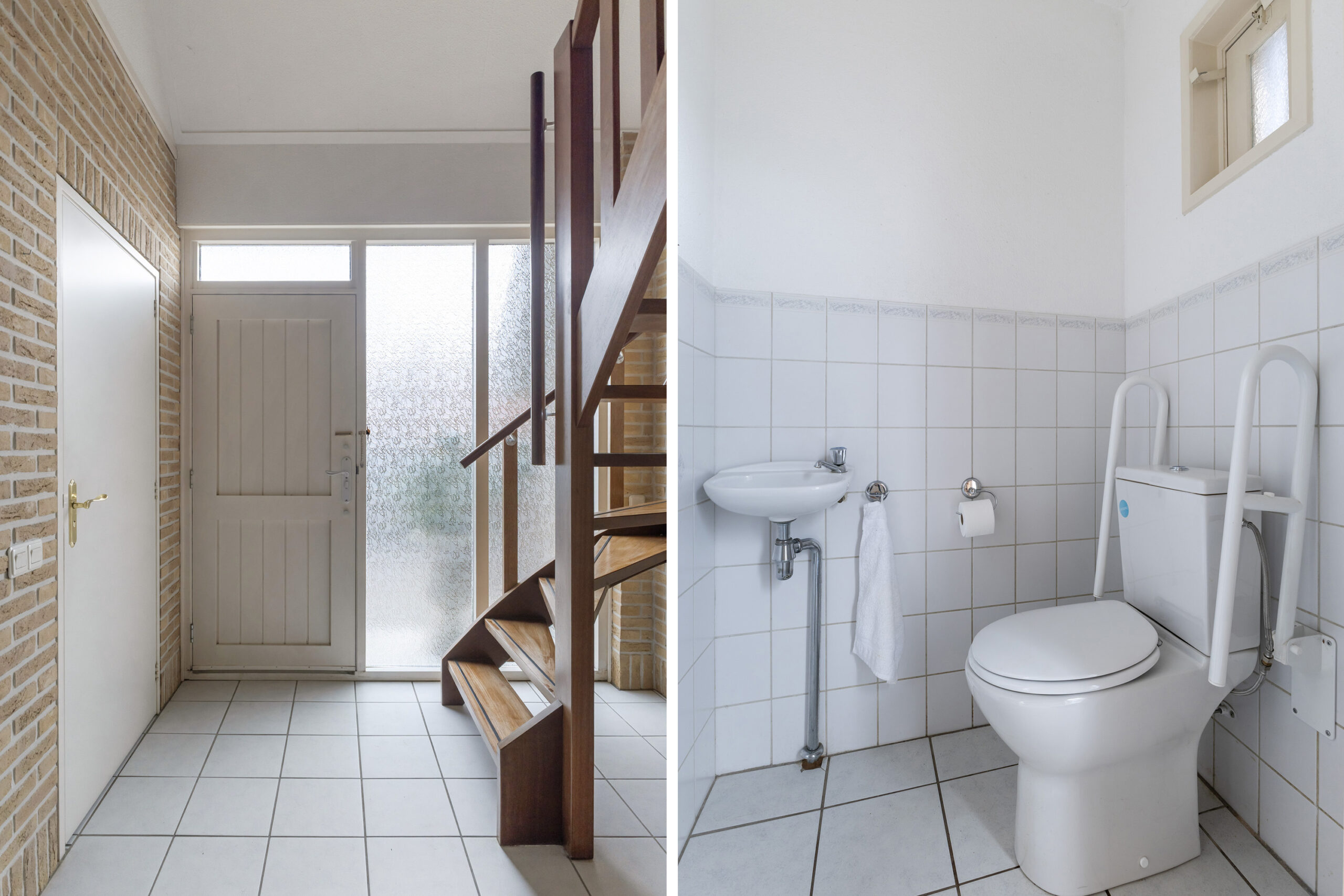 Bij binnenkomst kom je in de ruime entree/hal met toilet voorzien van fonteintje en de trapopgang naar de verdieping.
