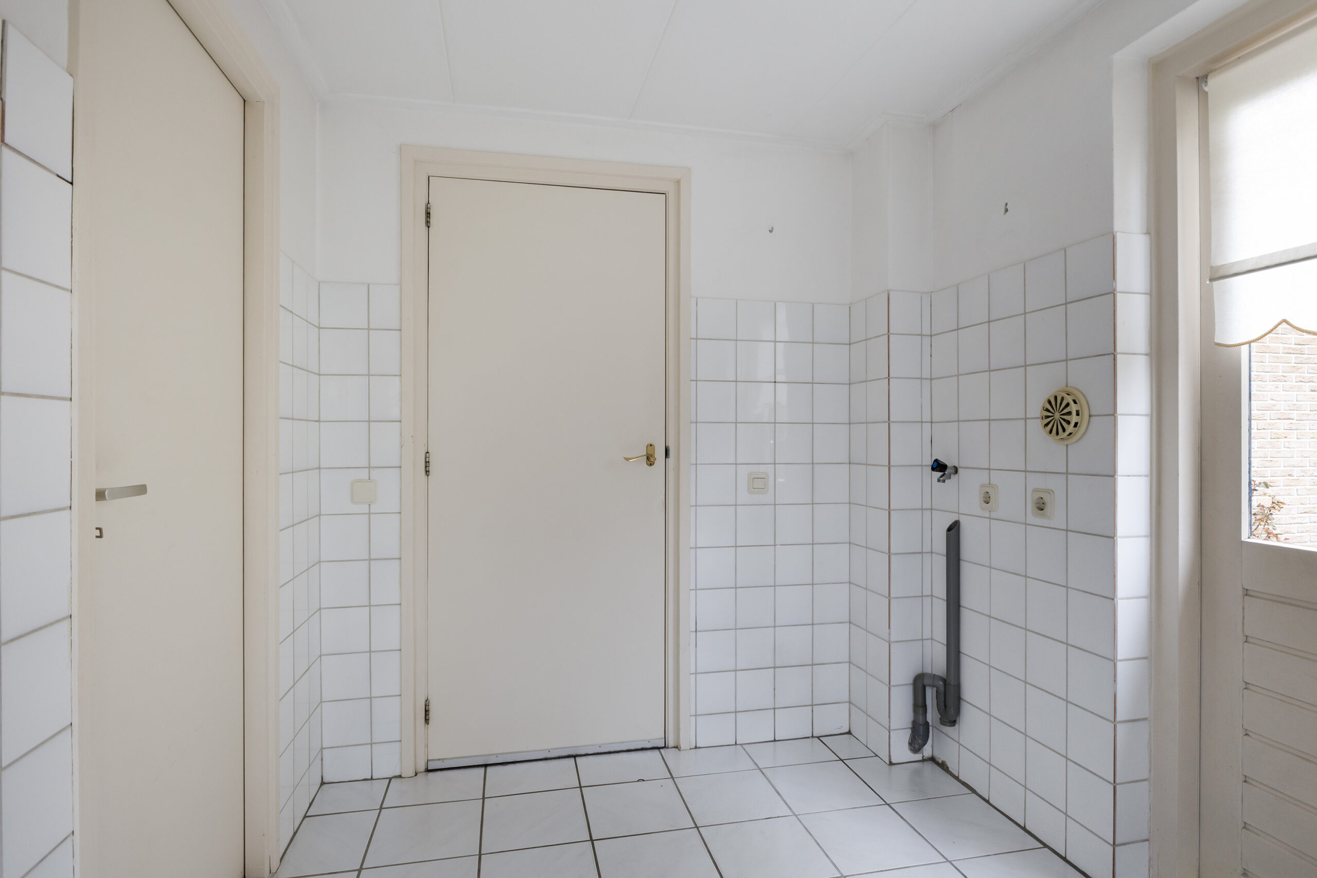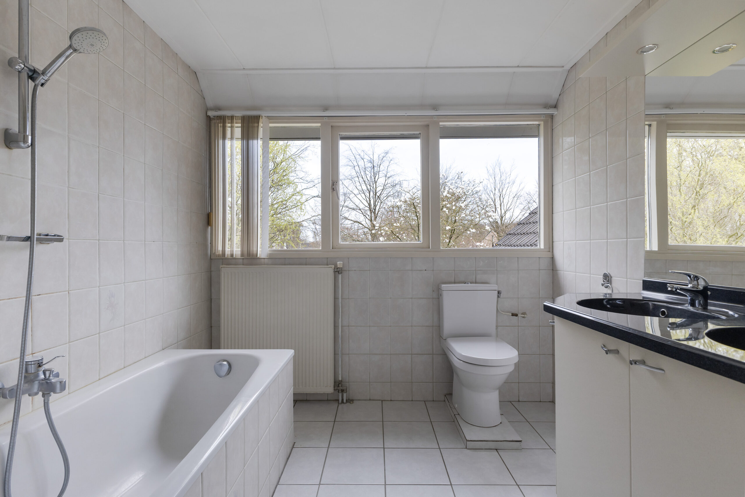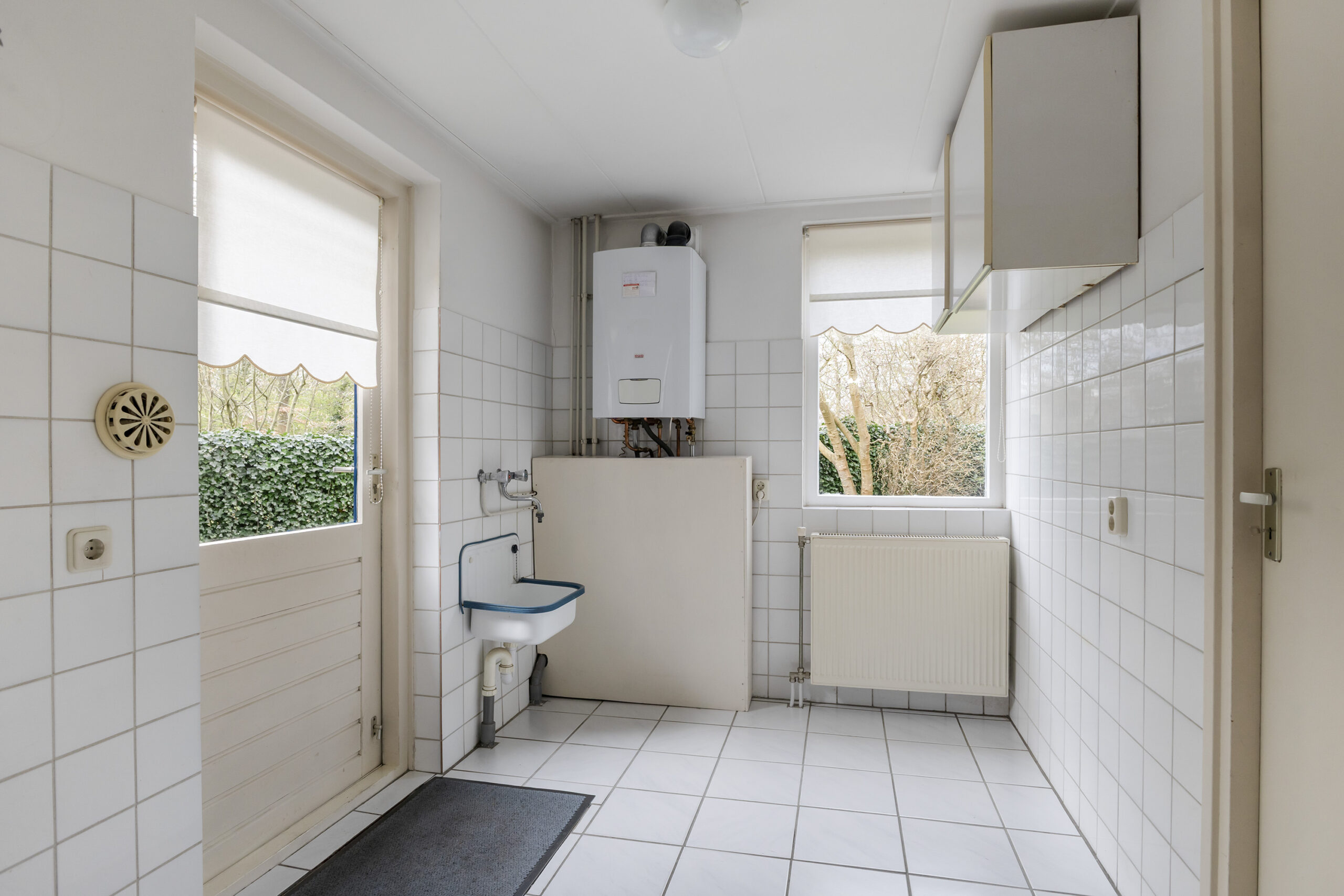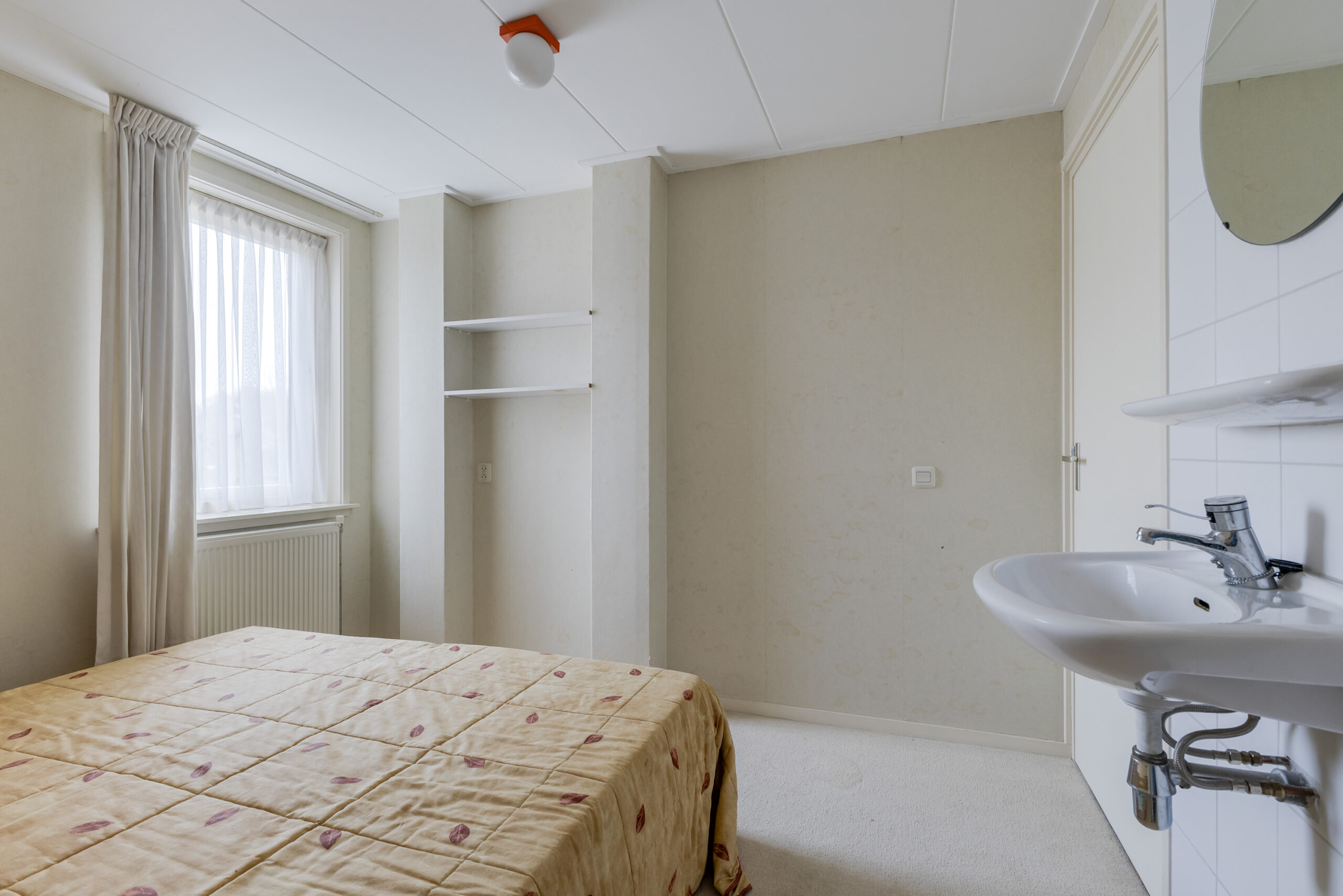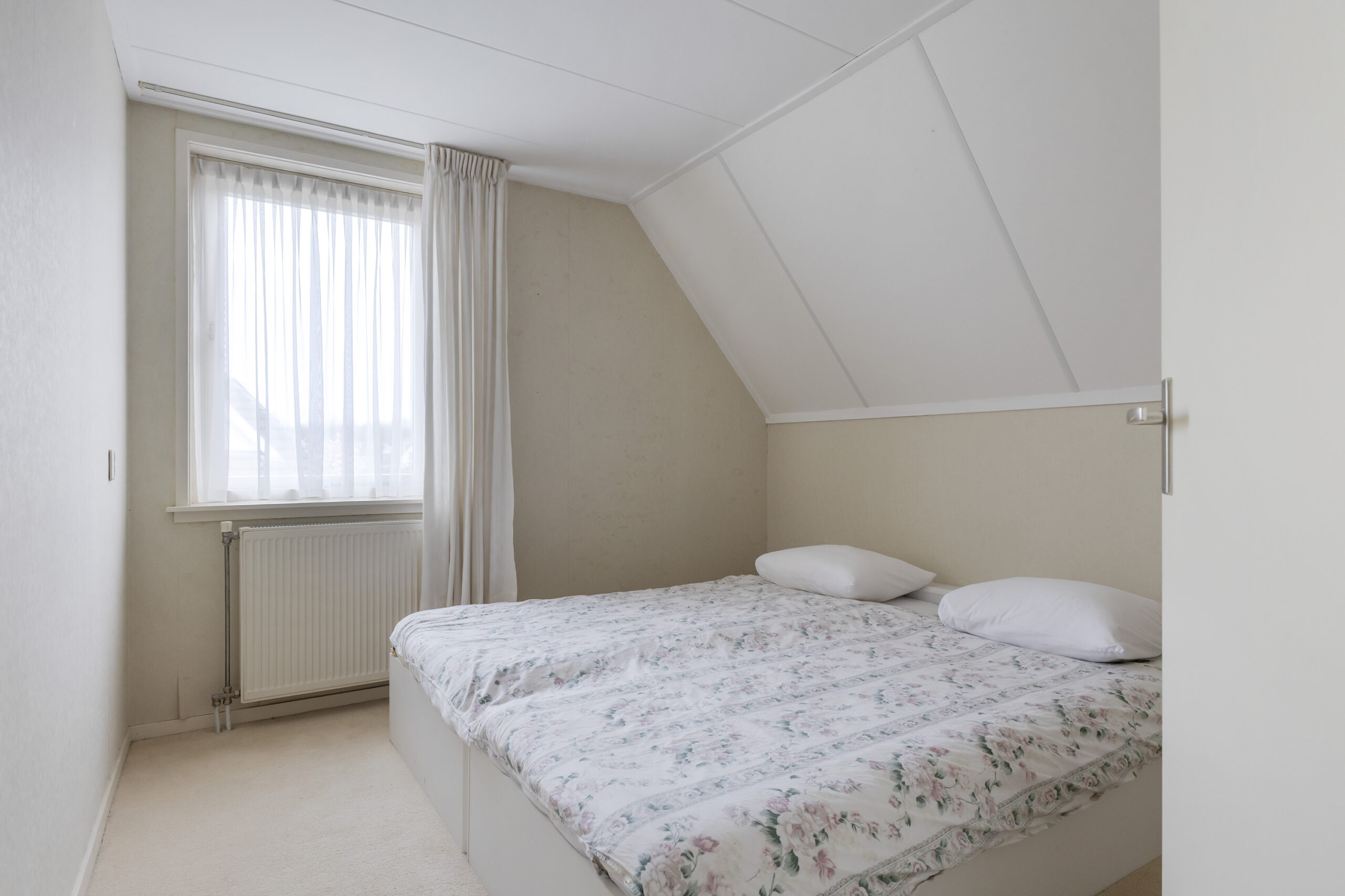 Daarnaast biedt de begane grond een slaapkamer die vanuit de hal bereikbaar is, ideaal voor wie gelijkvloers wil wonen of behoefte heeft aan een werkkamer. De praktische bijkeuken is uitgerust met de cv-opstelling en geeft toegang tot zowel de tuin als de aangebouwde garage. De garage beschikt bovendien over een handige vliering voor extra bergruimte.