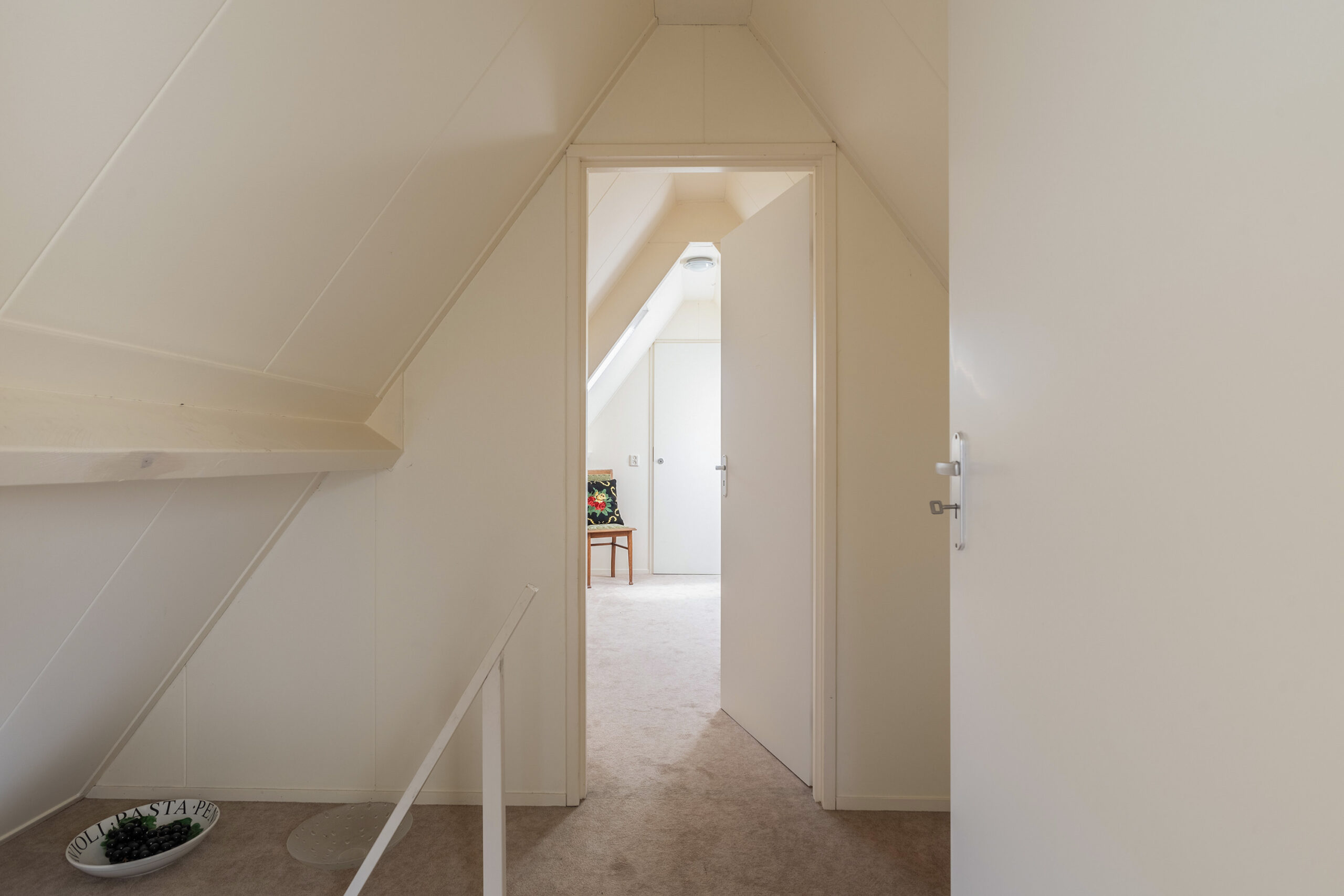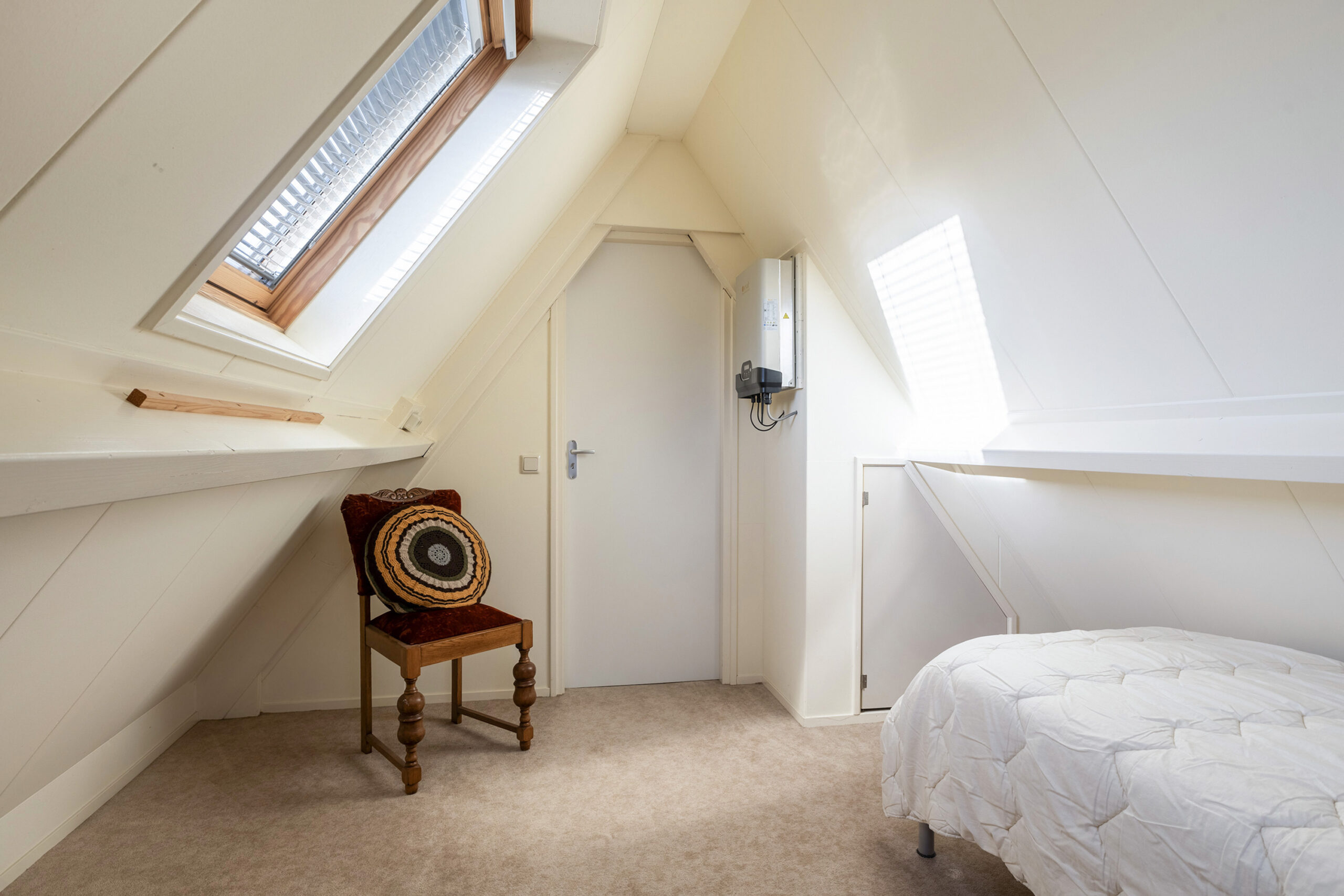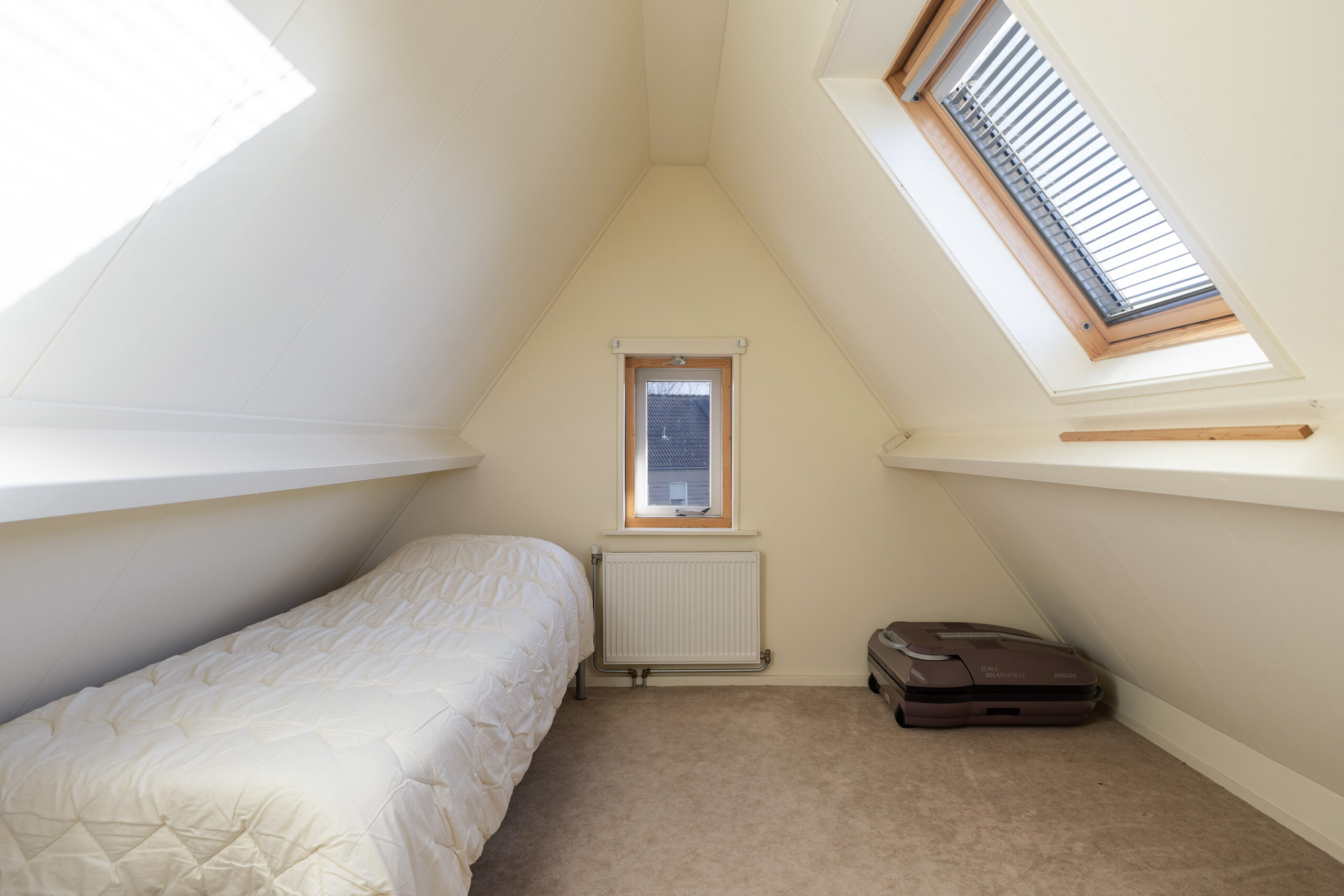 Via een vaste trap bereik je de tweede verdieping. Hier bevinden zich nog twee slaapkamers, waarvan één met vaste kastruimte, en een overloop. Daarnaast is er extra bergruimte aanwezig op de vliering.