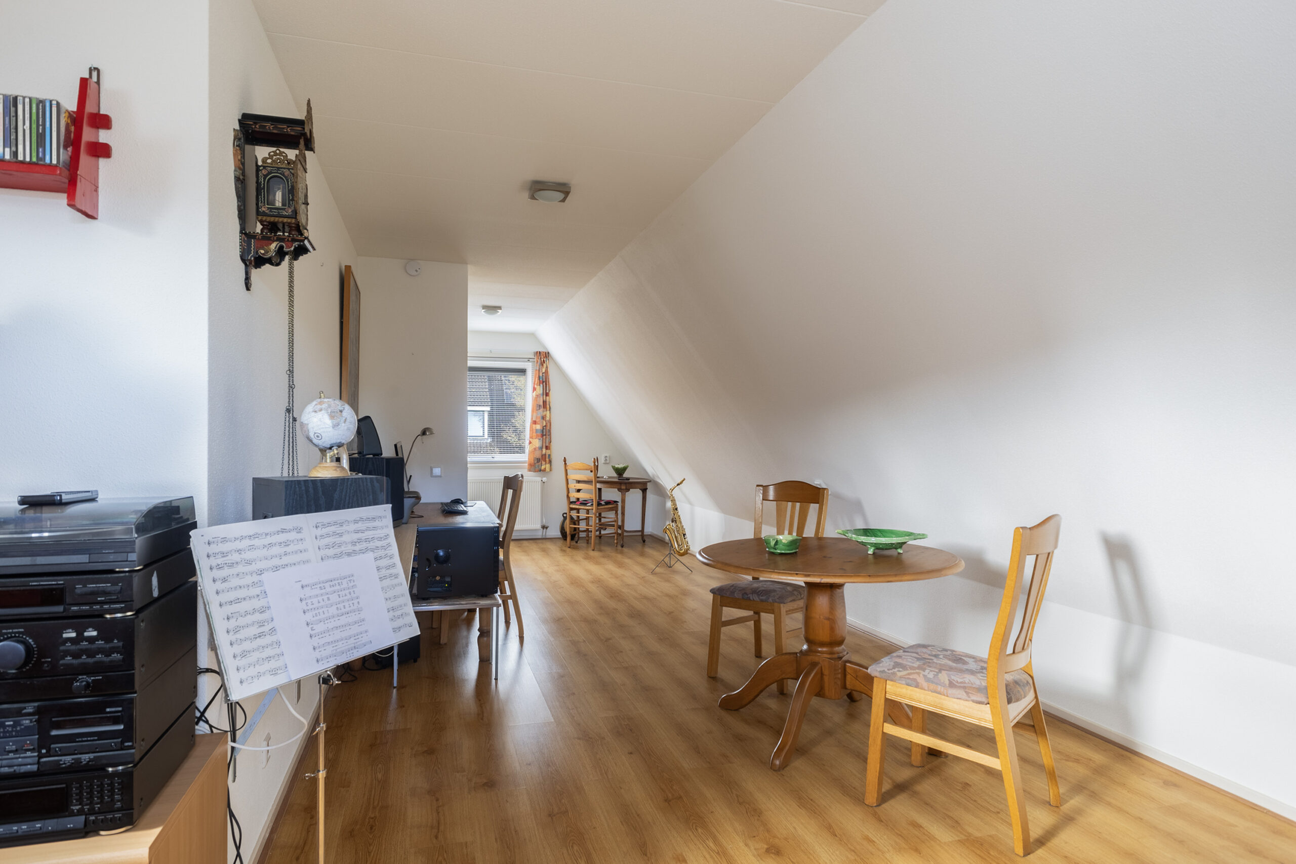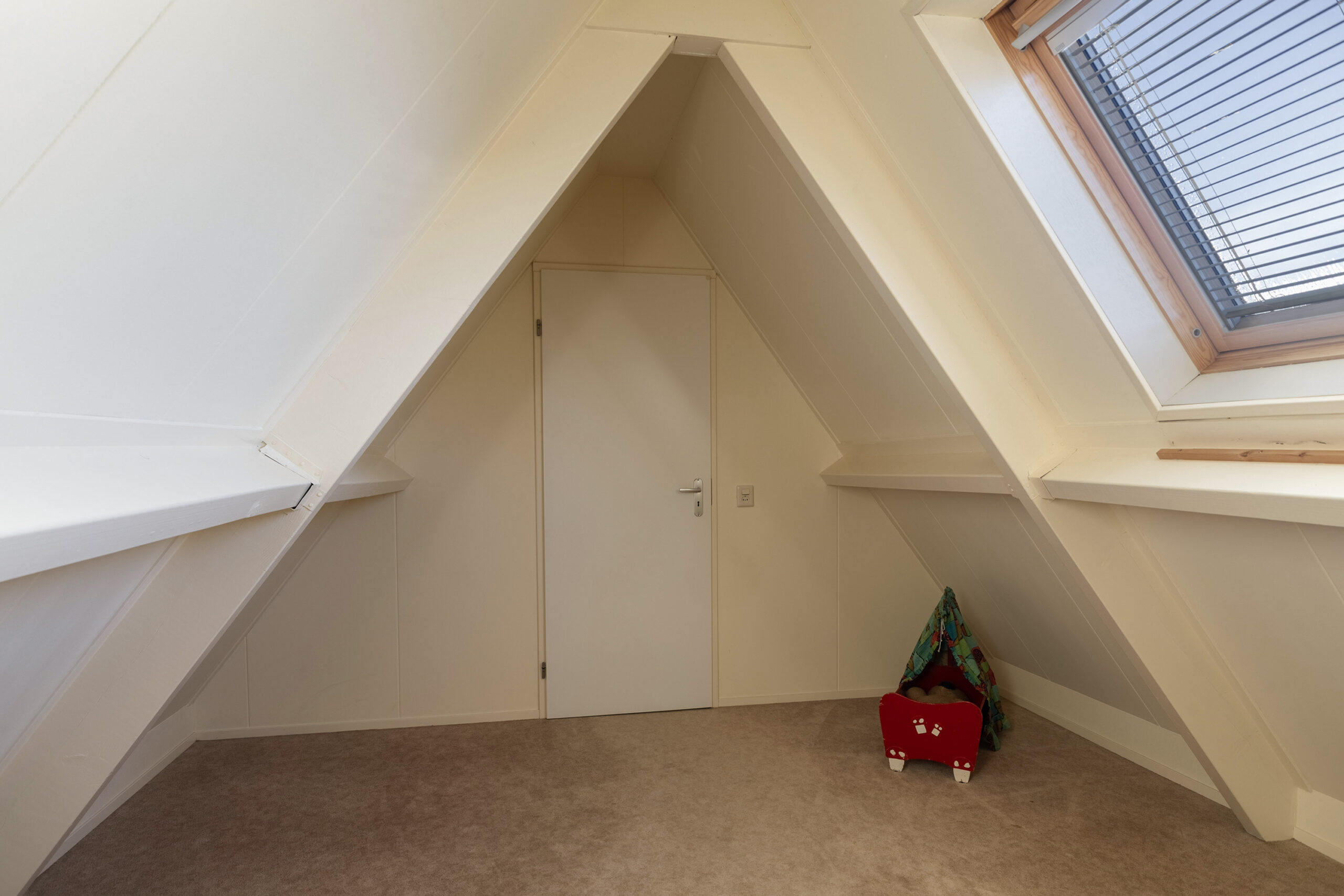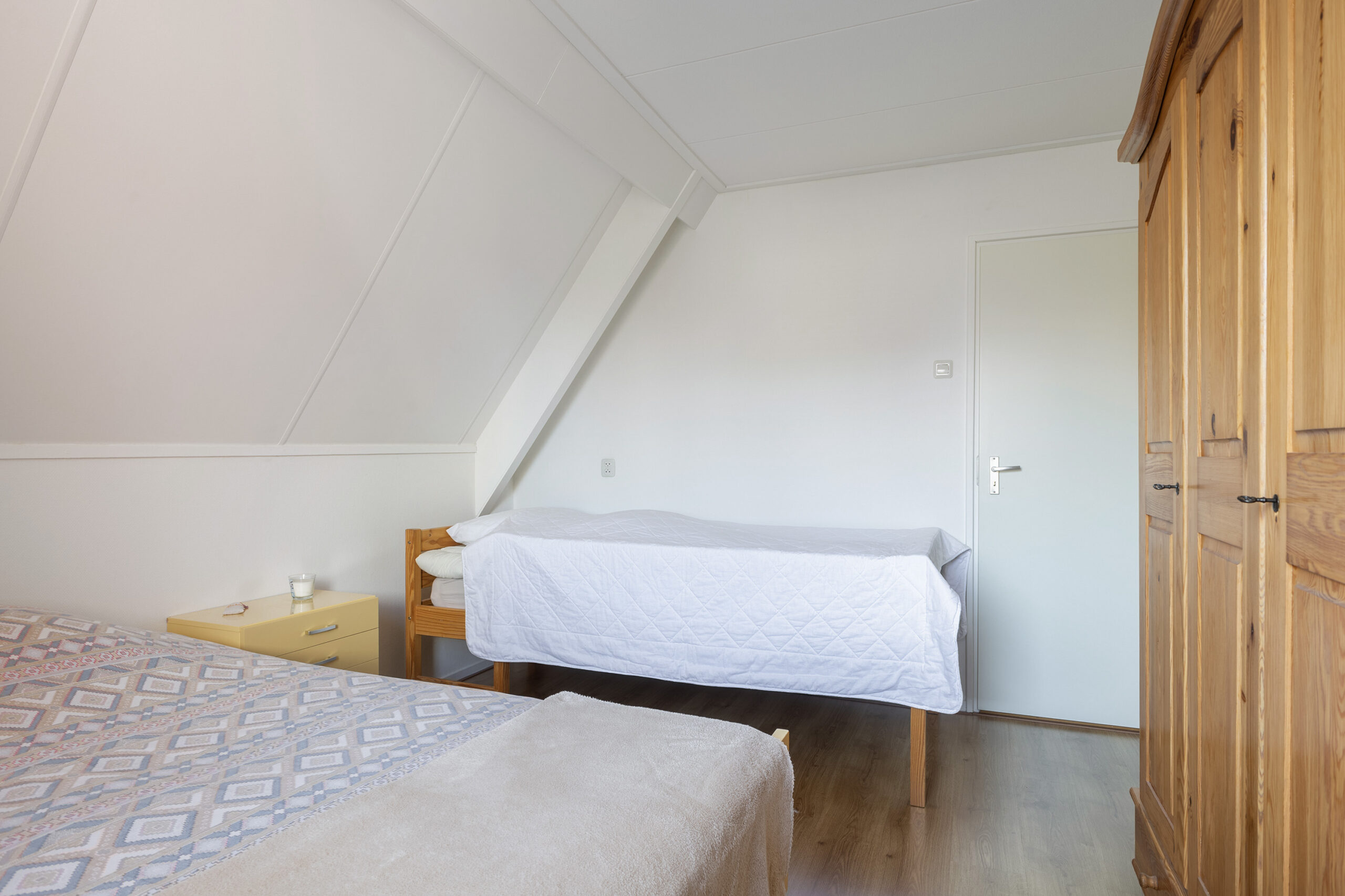 Via een vaste trap bereik je de tweede verdieping. Hier bevinden zich nog twee slaapkamers, waarvan één met vaste kastruimte, en een overloop. Daarnaast is er extra bergruimte aanwezig op de vliering.