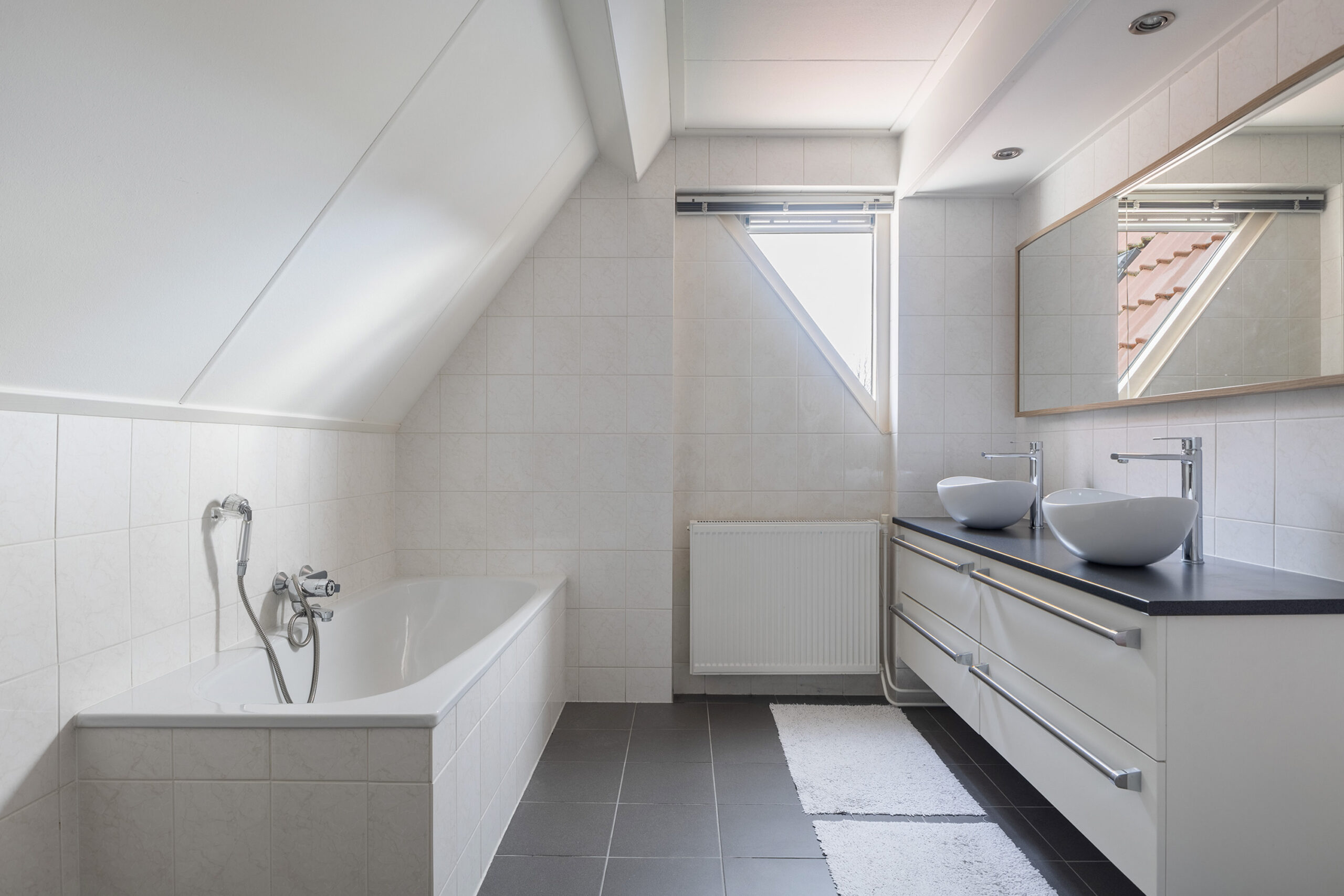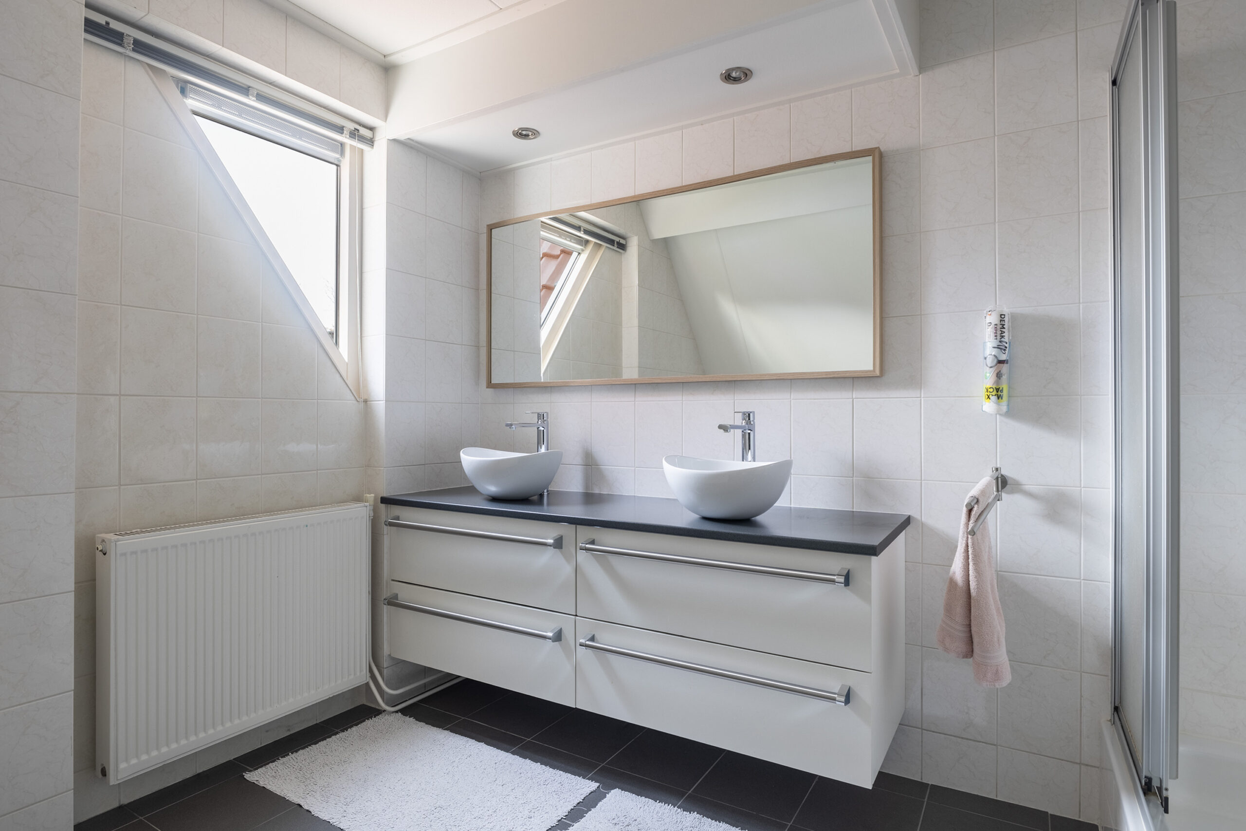 De royale overloop geeft toegang tot vier slaapkamers, waaronder één zeer ruime slaapkamer aan de achterzijde met toegang tot het balkon. De moderne badkamer is compleet uitgevoerd met een ligbad, douche, dubbele wastafel met meubel en een toilet.