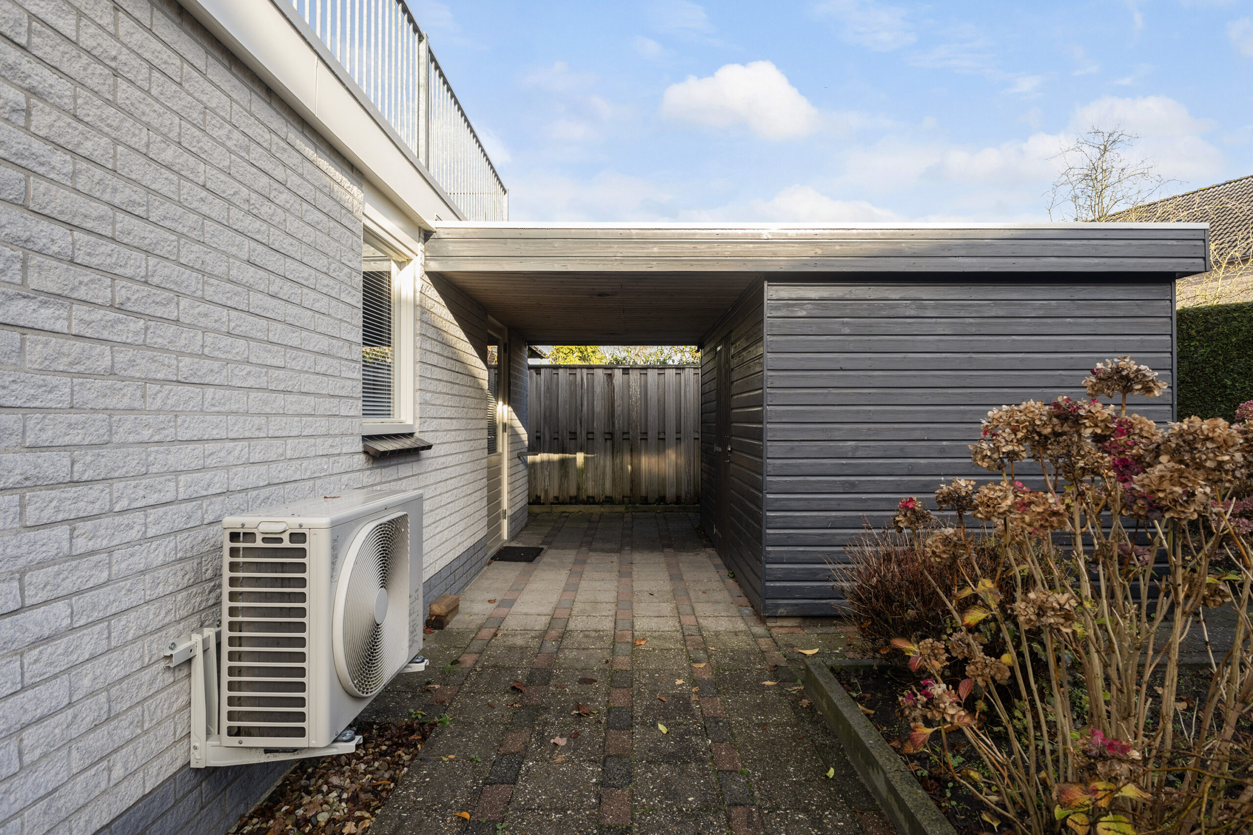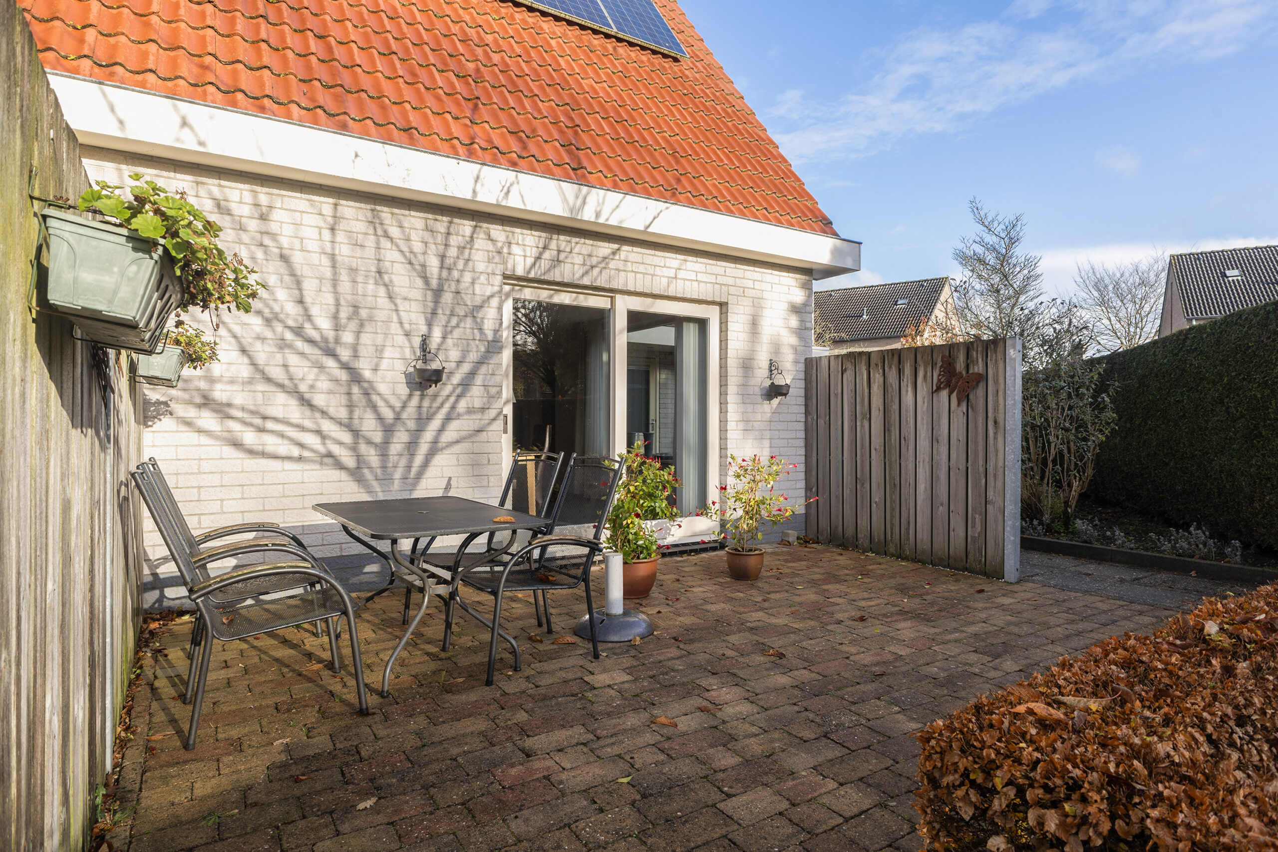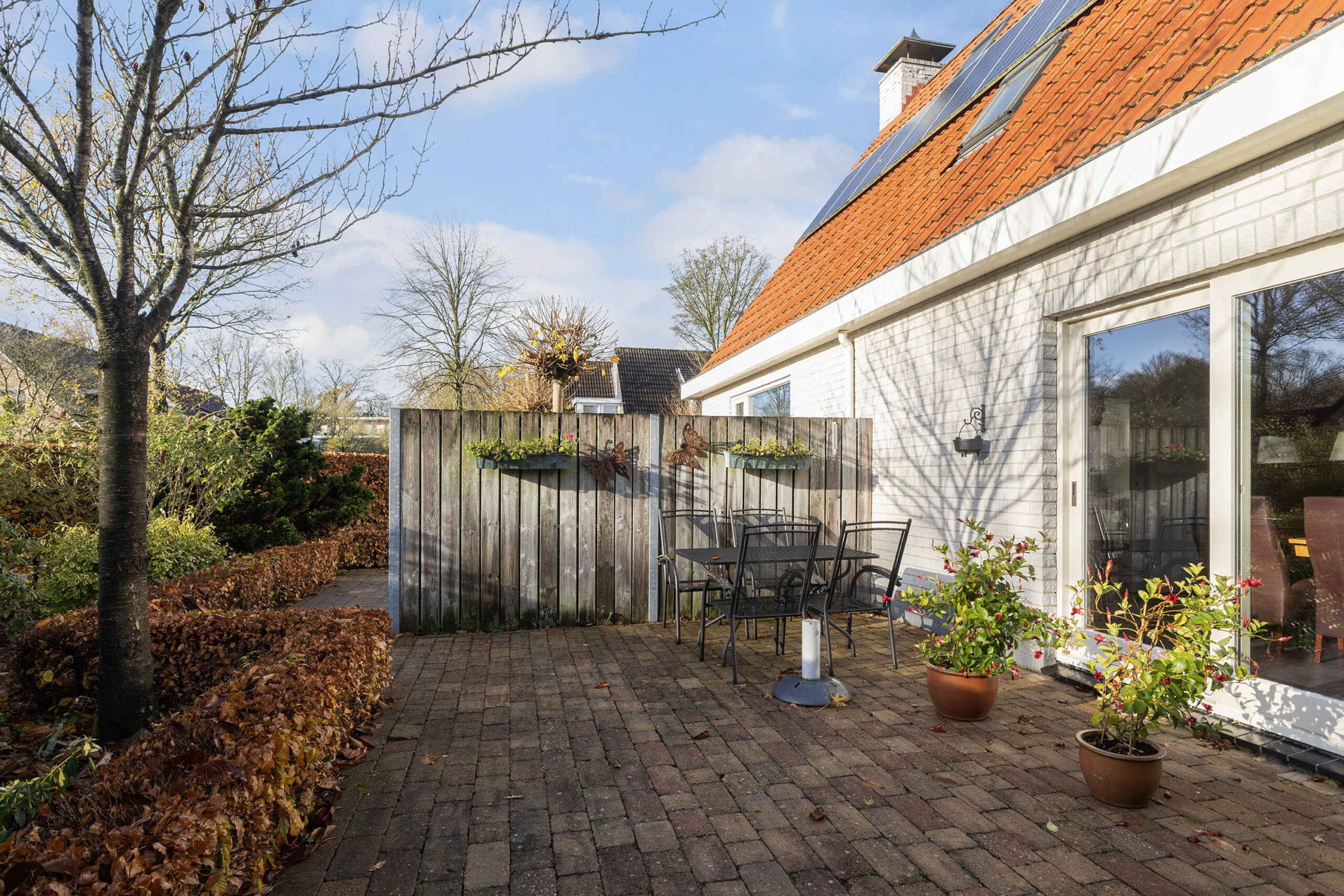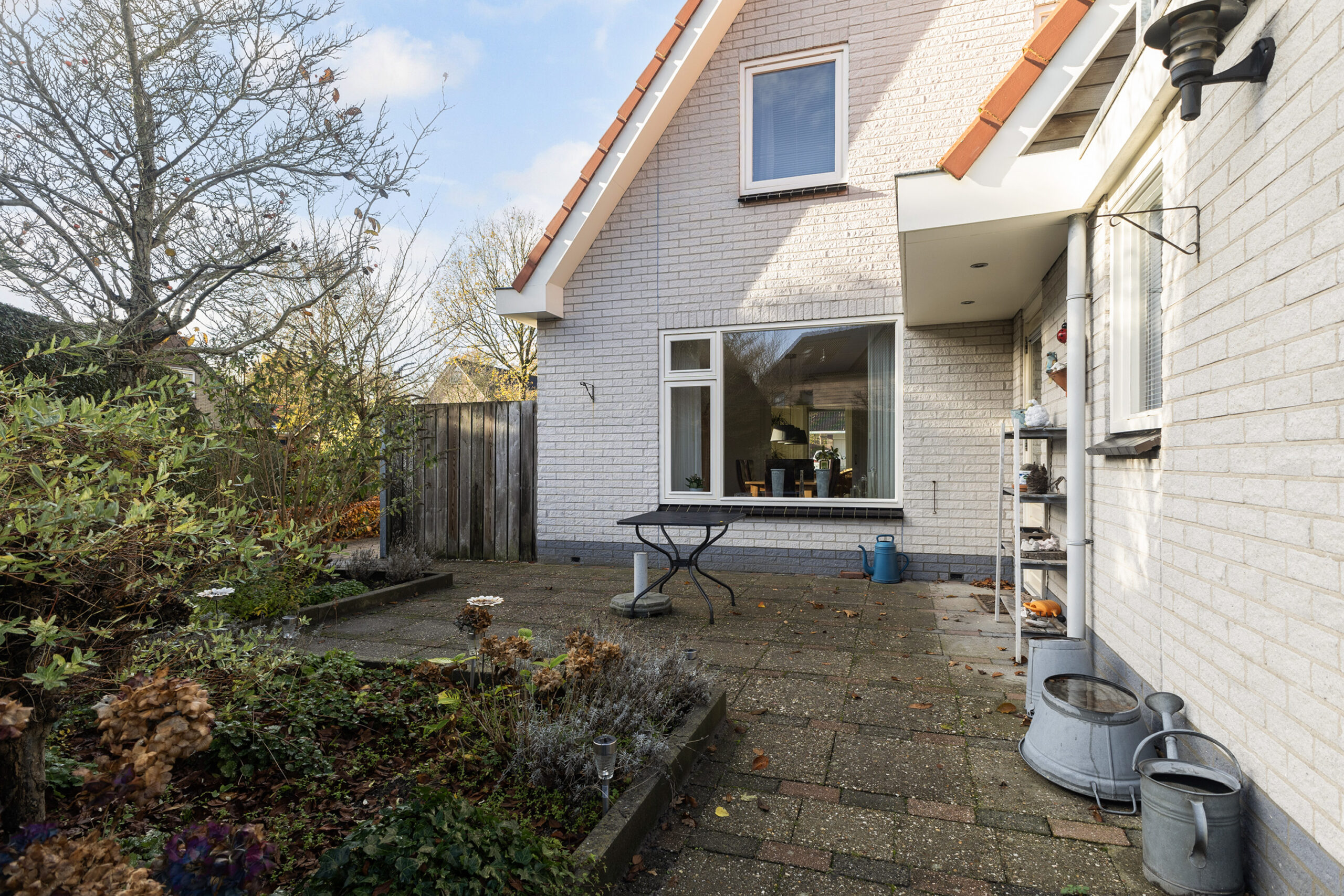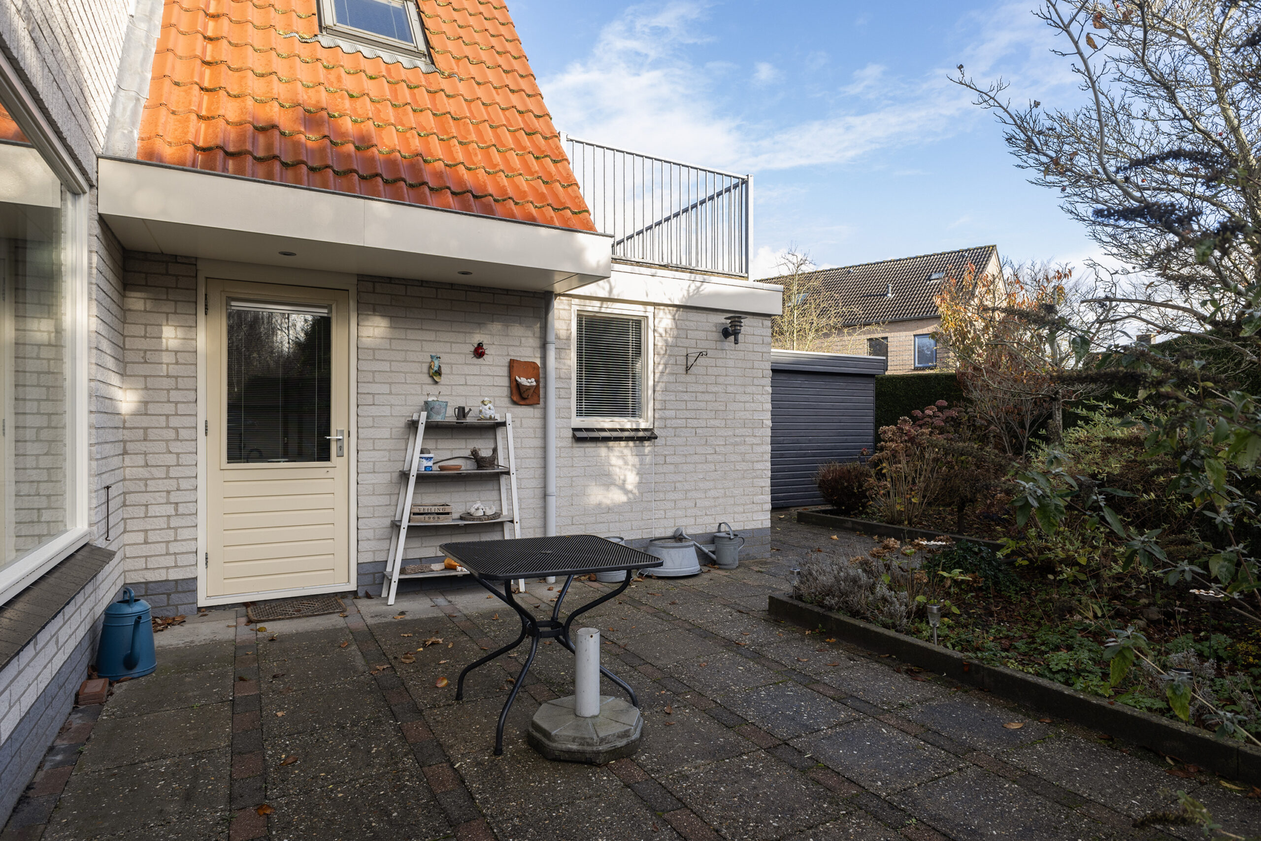 Achter de woning ligt een beschutte en verzorgde tuin met een kleine overkapping en separate berging.