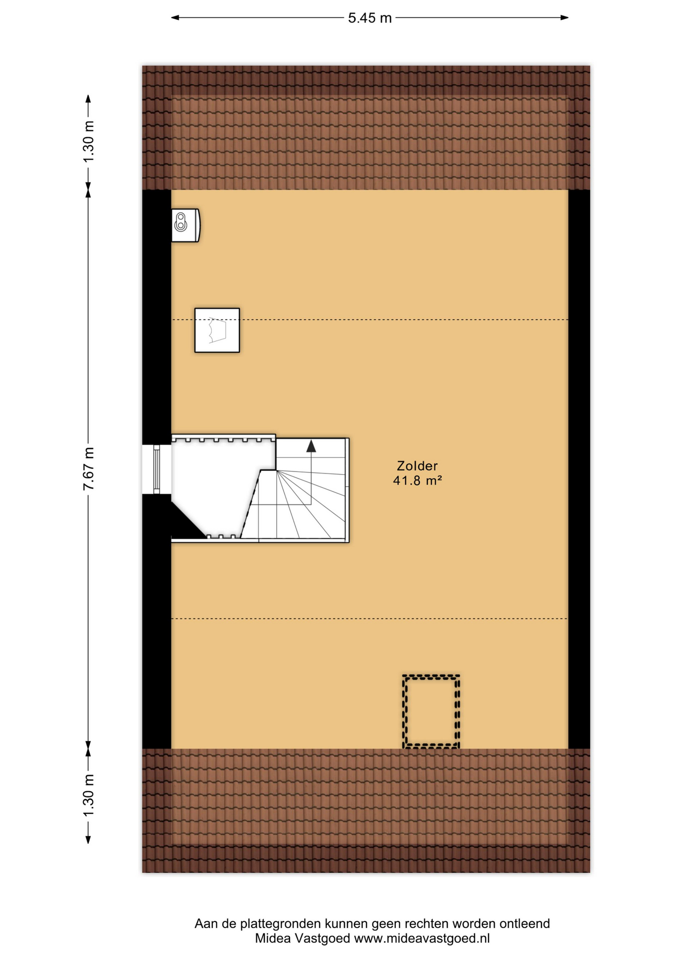 De tweede verdieping is middels een vaste trap bereikbaar. Deze ruimte is onafgewerkt.