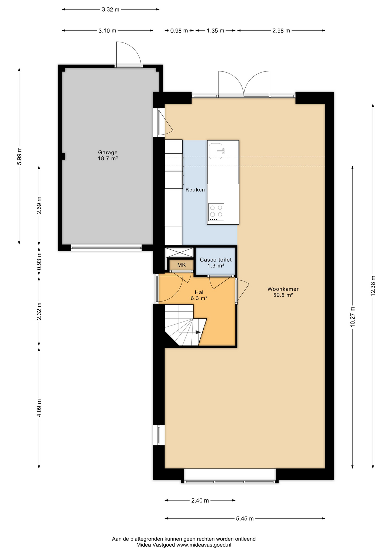 Het vermelde woonoppervlak en de inhoud zijn indicatief en gebaseerd op de beschikbare bouwtekeningen en de gekozen woninguitbreiding. Hieraan kunnen geen rechten worden ontleend.