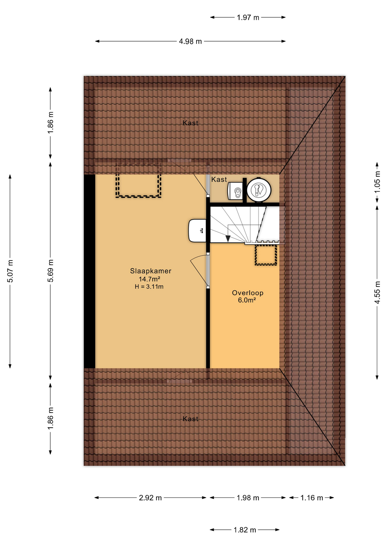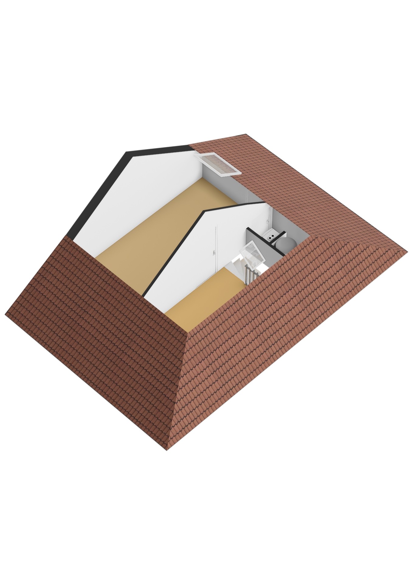 Tweede verdieping: Via een vaste trap bereik je de zolderverdieping. Hier is een vierde slaapkamer met wastafel en extra bergruimte.