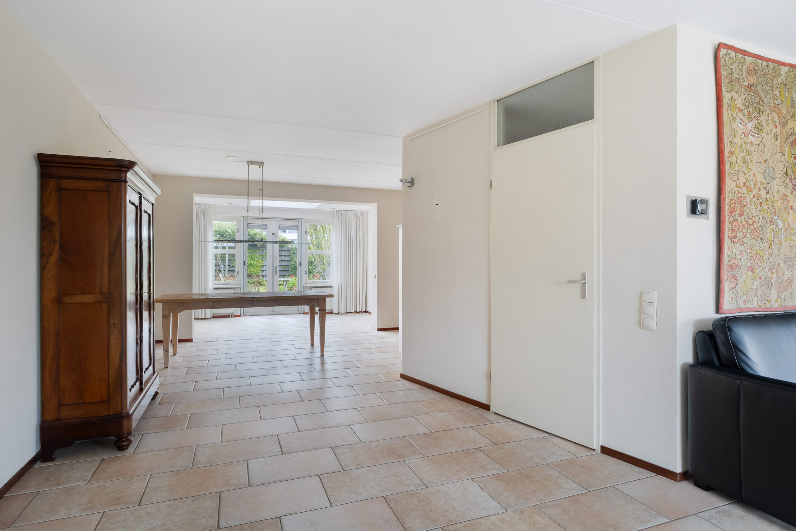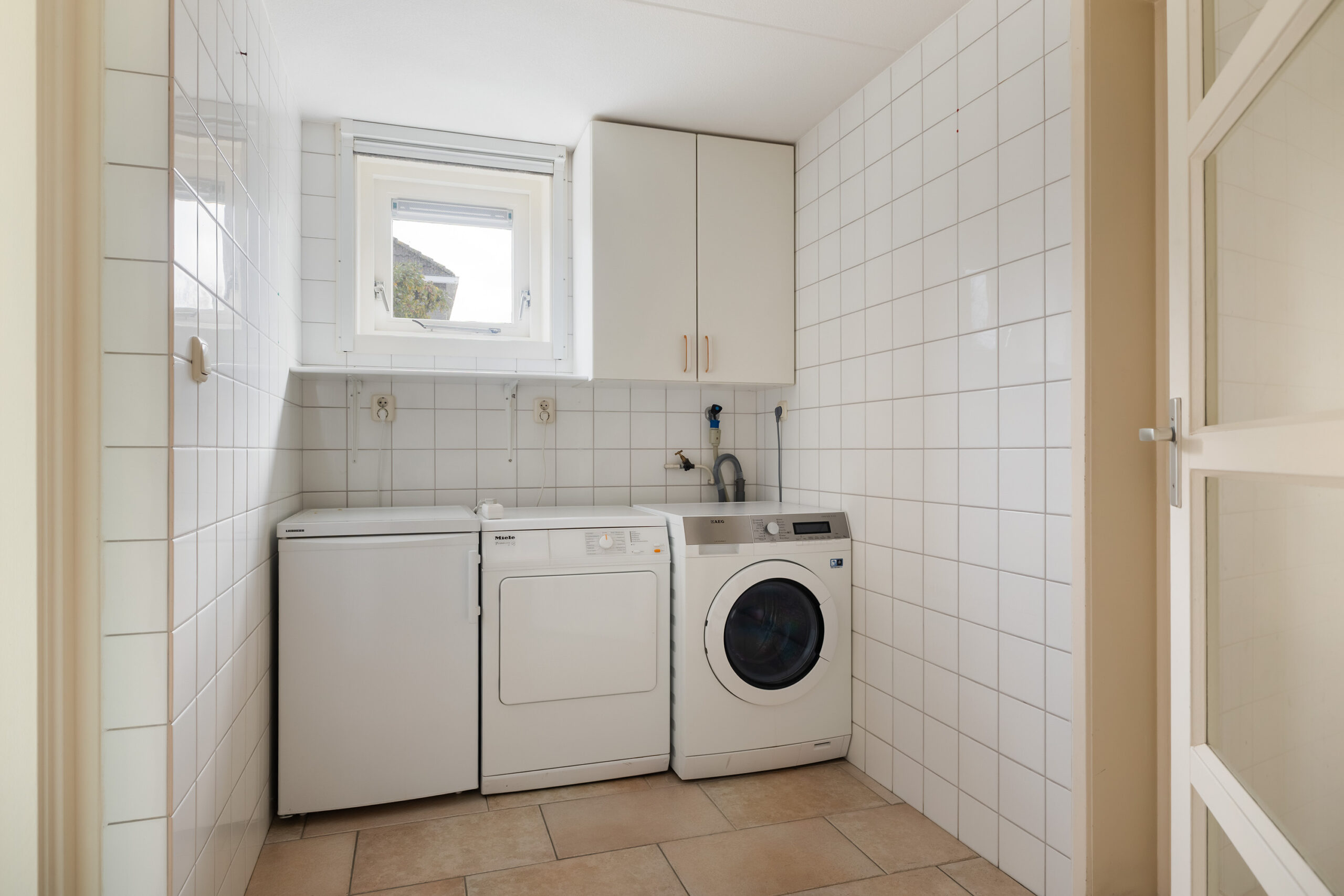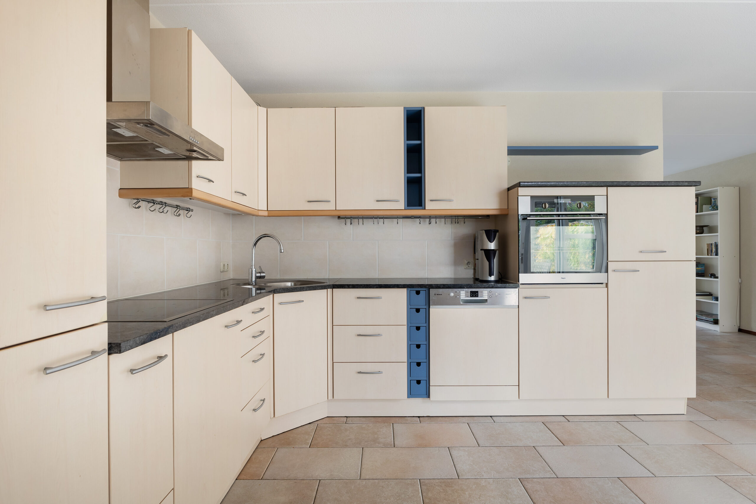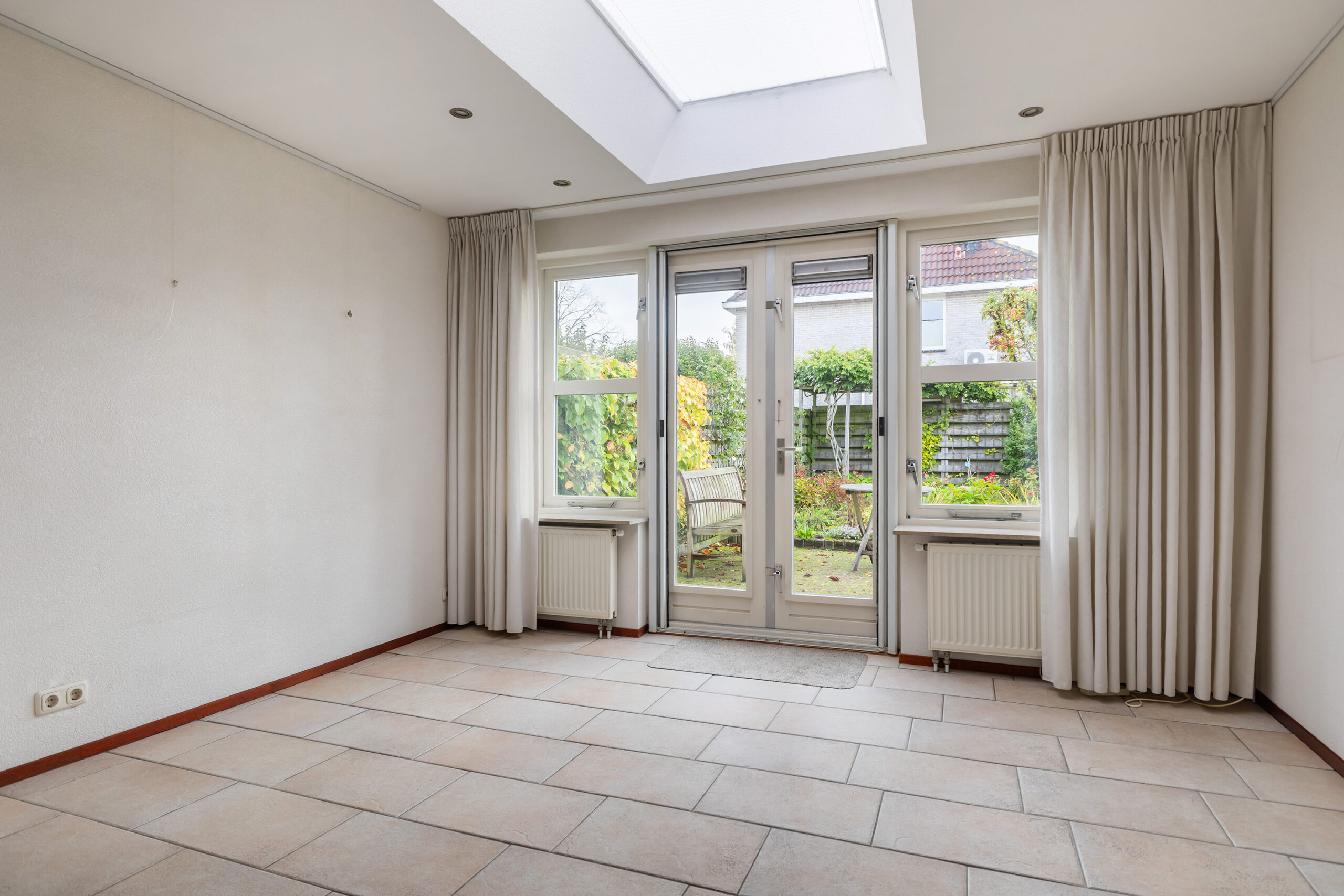 Begane grond: Via de zijentree kom je in de hal met meterkast, toilet met fonteintje en de trap naar de verdieping. De royale woonkamer met eetkamer biedt voldoende leefruimte. Daarnaast is er een aparte zitkamer met openslaande deuren naar de tuin – ideaal voor een rustige leeshoek of speelkamer. De keuken in hoekopstelling is voorzien van diverse inbouwapparatuur waaronder een kookplaat, oven, koel-vriescombinatie en vaatwasser. Aansluitend vind je de bijkeuken met witgoed aansluitingen en toegang tot de garage.