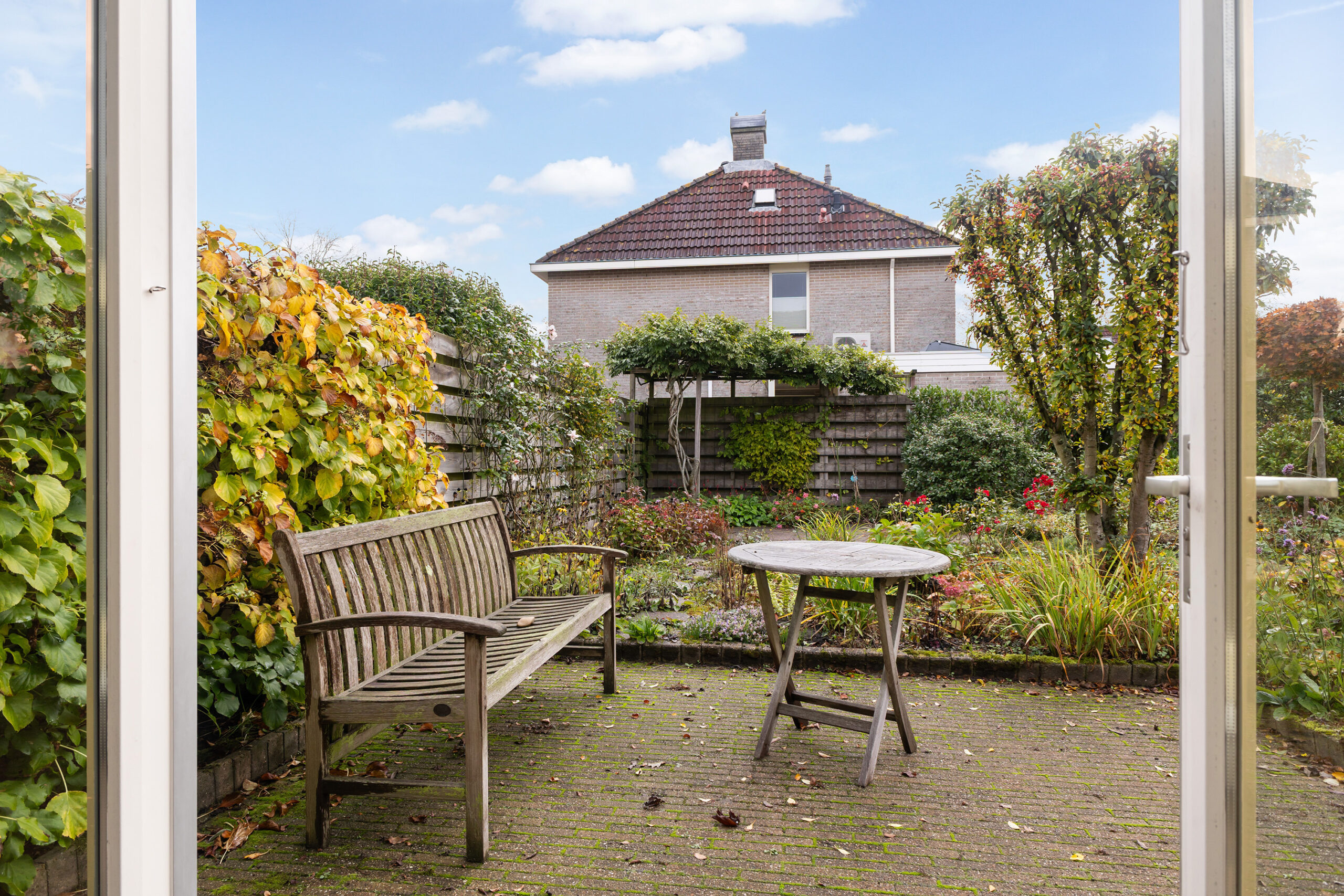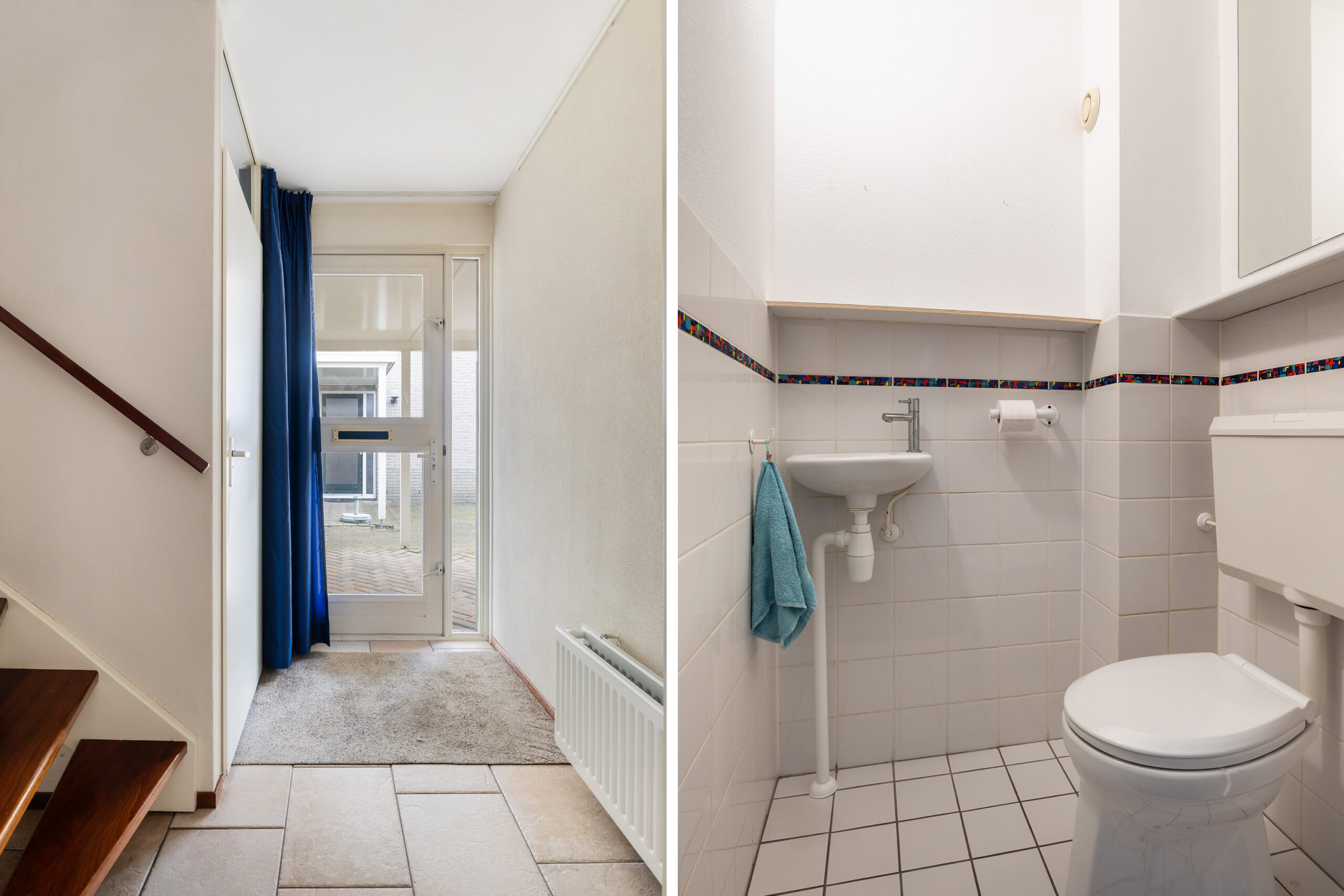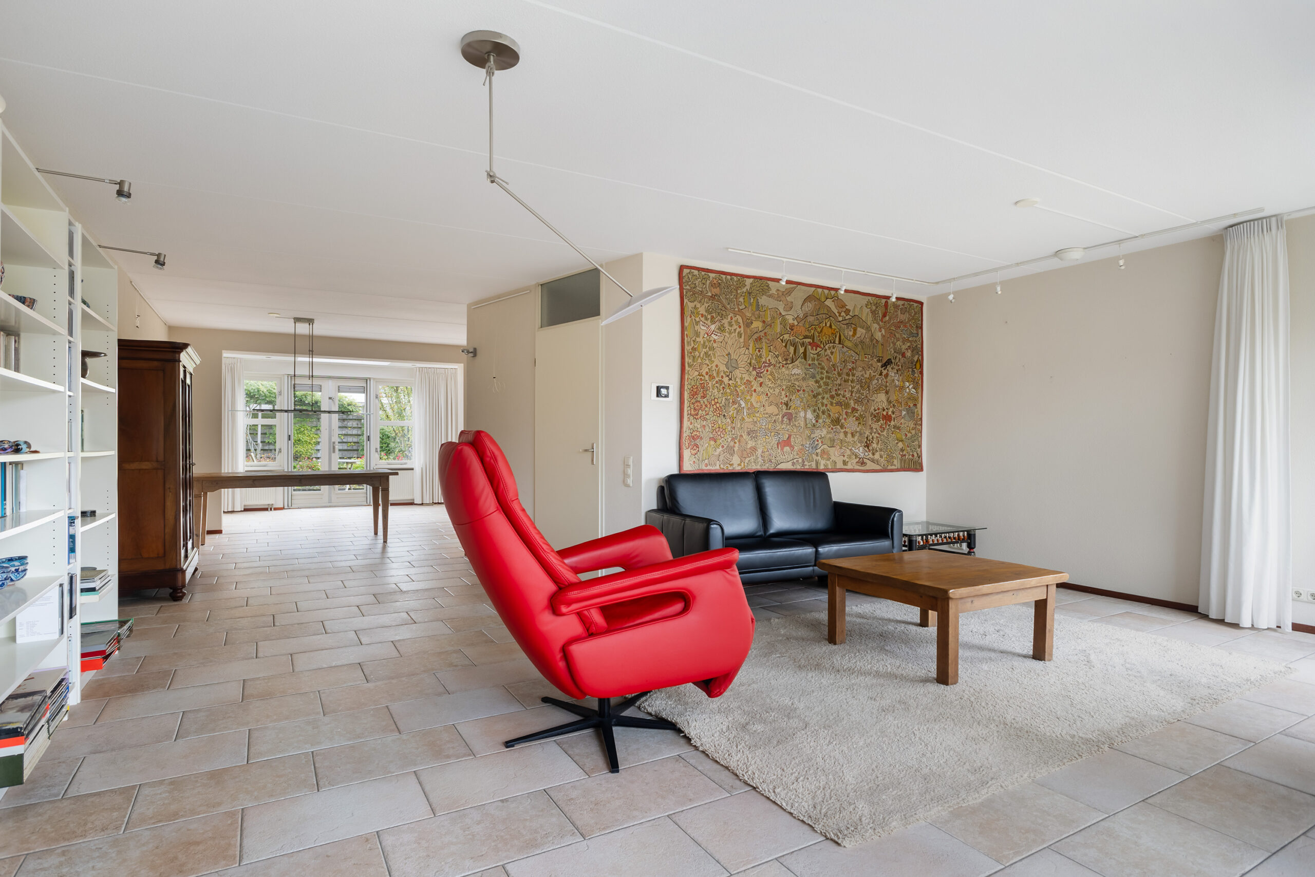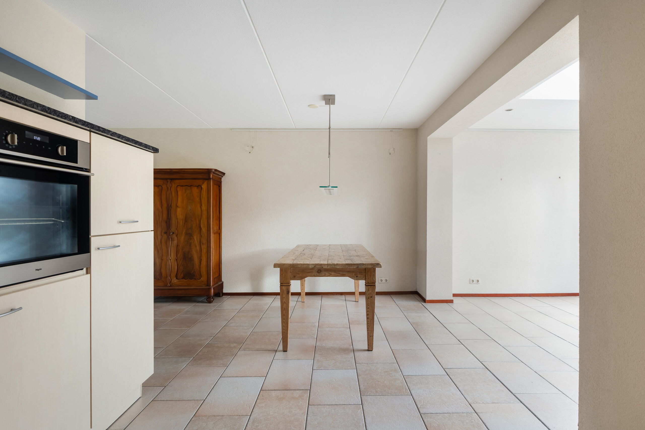 Begane grond: Via de zijentree kom je in de hal met meterkast, toilet met fonteintje en de trap naar de verdieping. De royale woonkamer met eetkamer biedt voldoende leefruimte. Daarnaast is er een aparte zitkamer met openslaande deuren naar de tuin – ideaal voor een rustige leeshoek of speelkamer. De keuken in hoekopstelling is voorzien van diverse inbouwapparatuur waaronder een kookplaat, oven, koel-vriescombinatie en vaatwasser. Aansluitend vind je de bijkeuken met witgoed aansluitingen en toegang tot de garage.