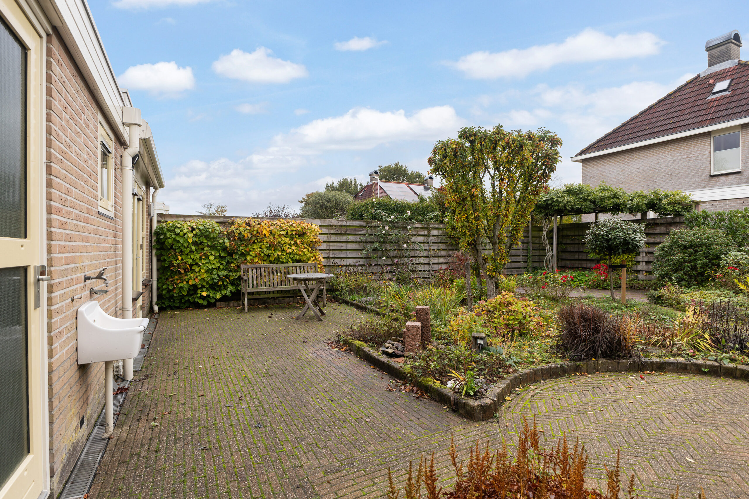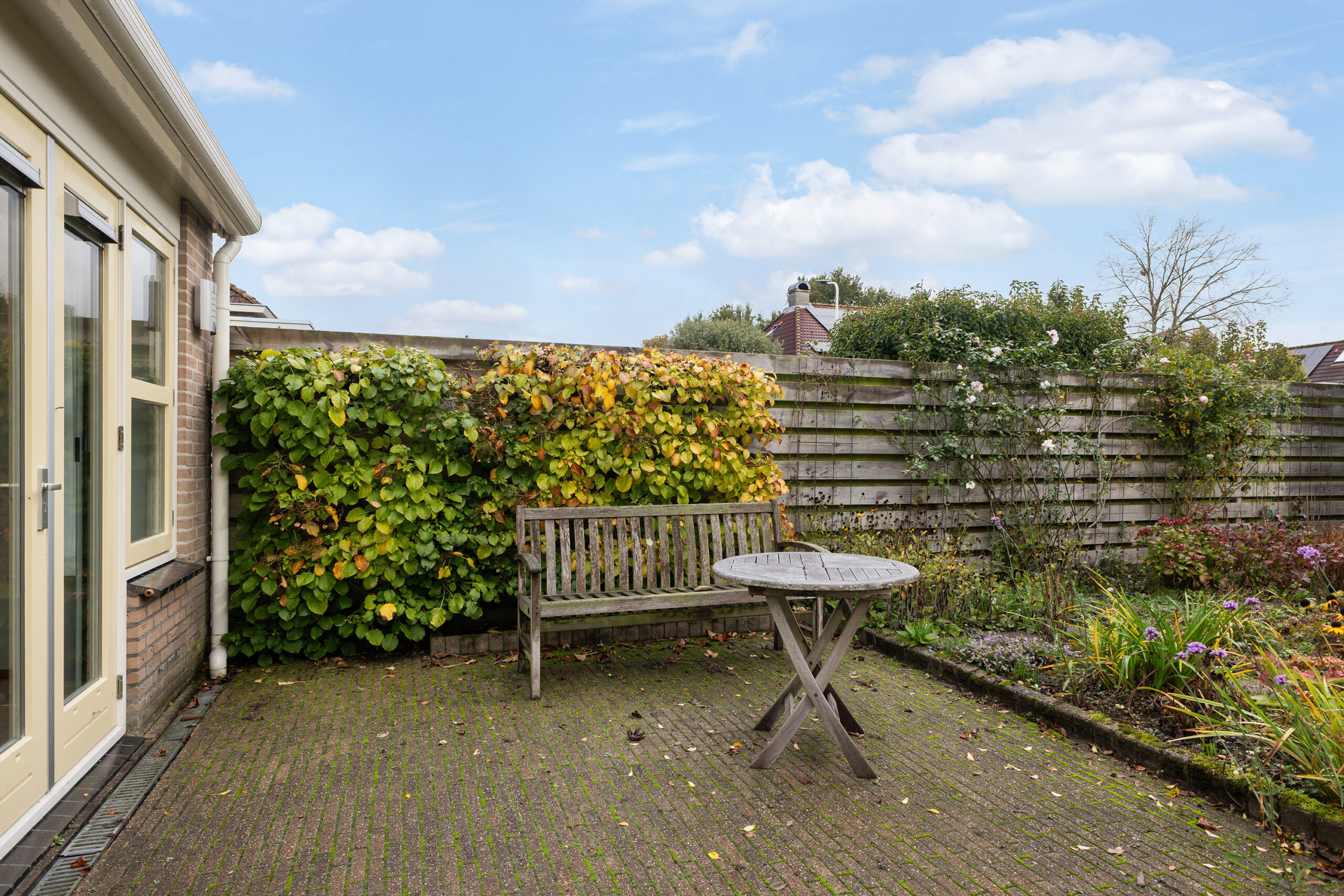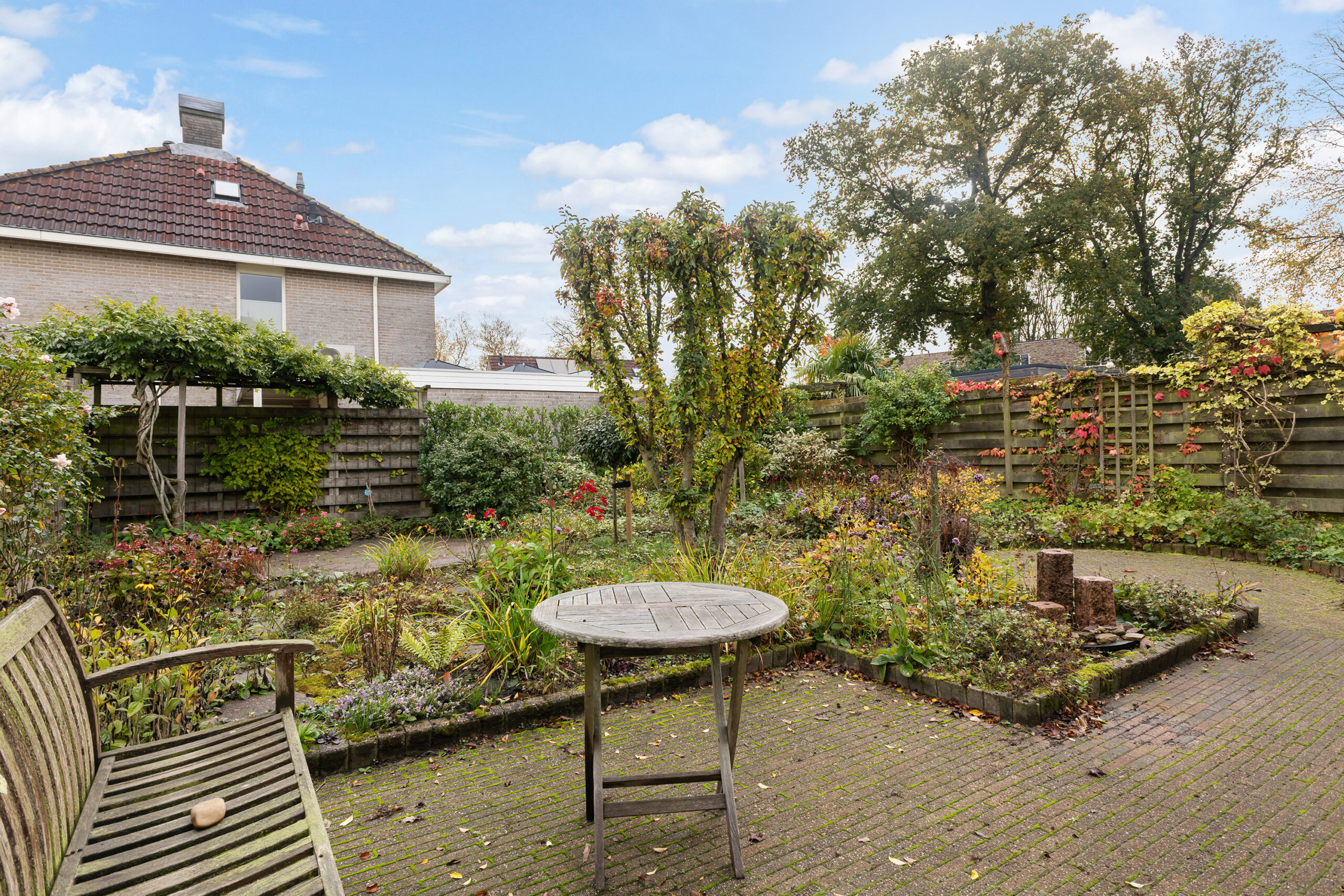 Achter de woning ligt een ruime, beschutte tuin met meerdere terrassen.