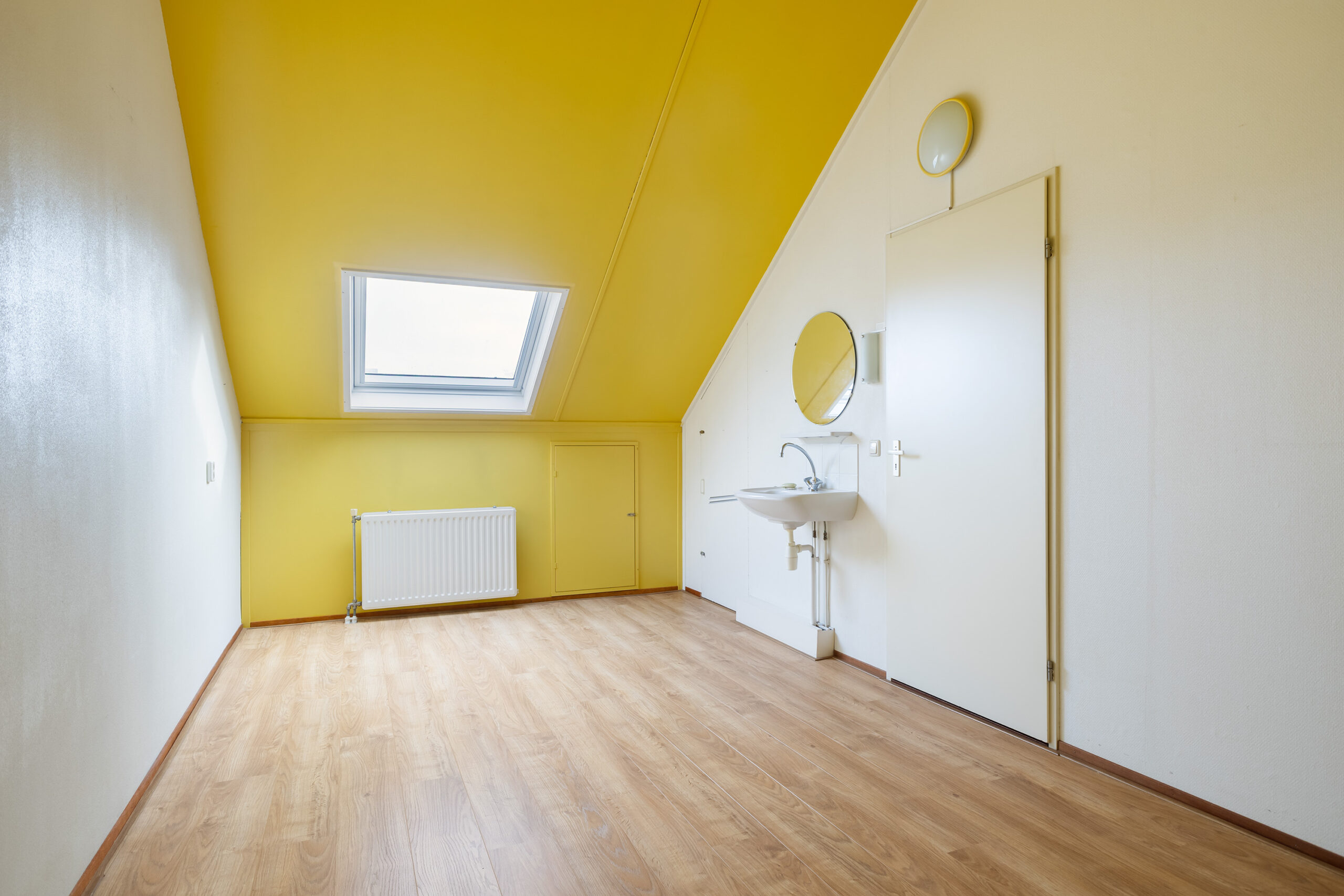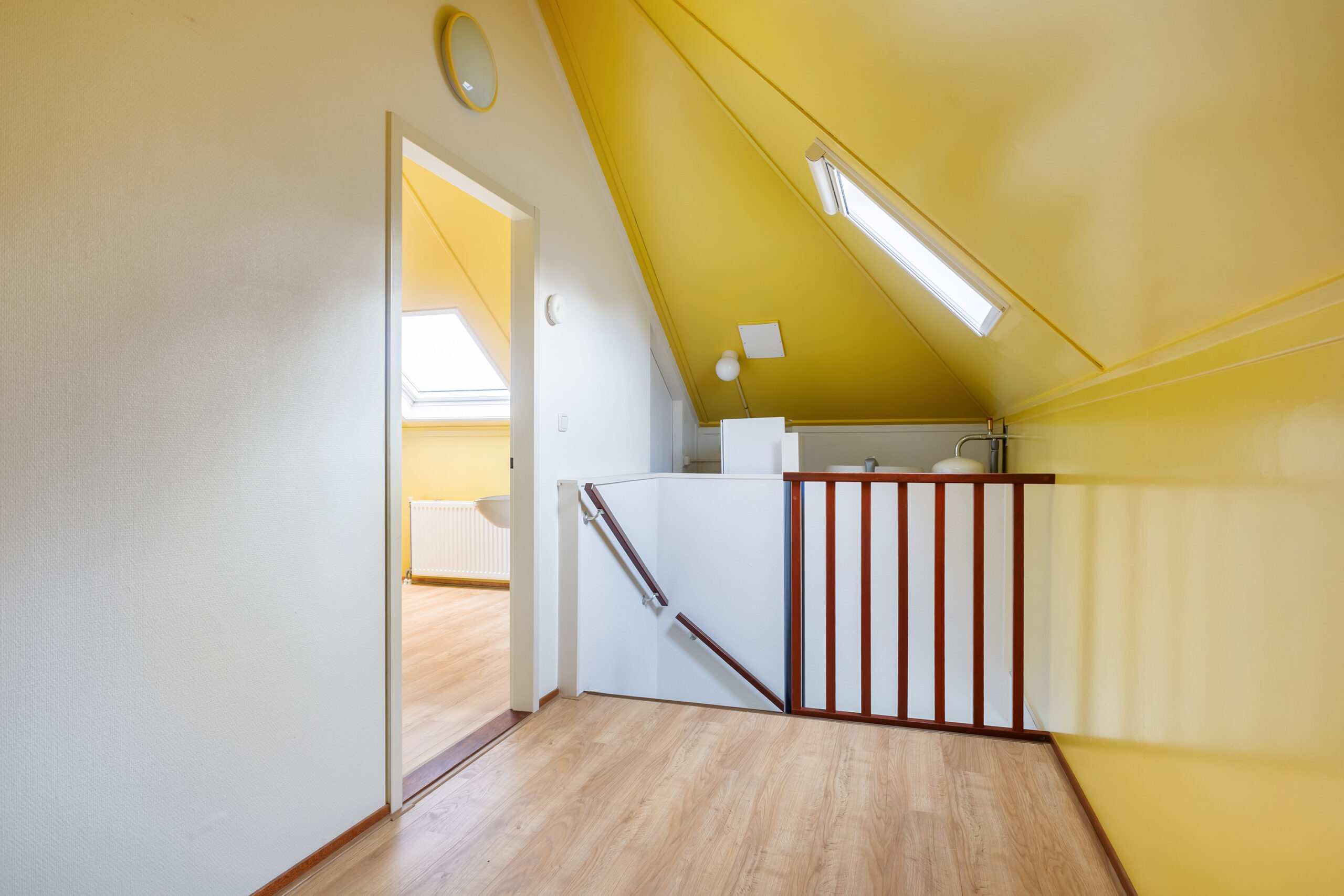Tweede verdieping: Via een vaste trap bereik je de zolderverdieping. Hier is een vierde slaapkamer met wastafel en extra bergruimte.