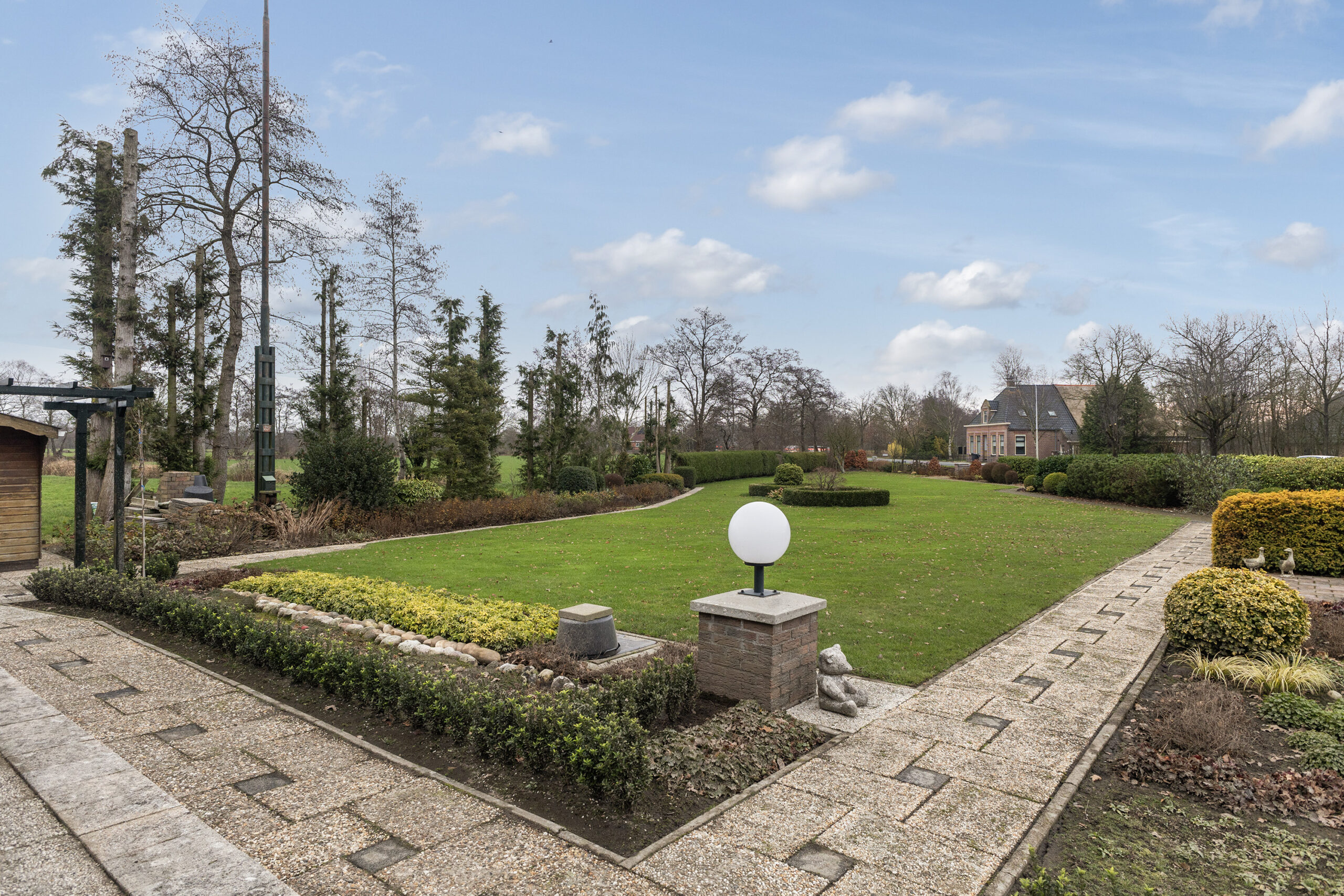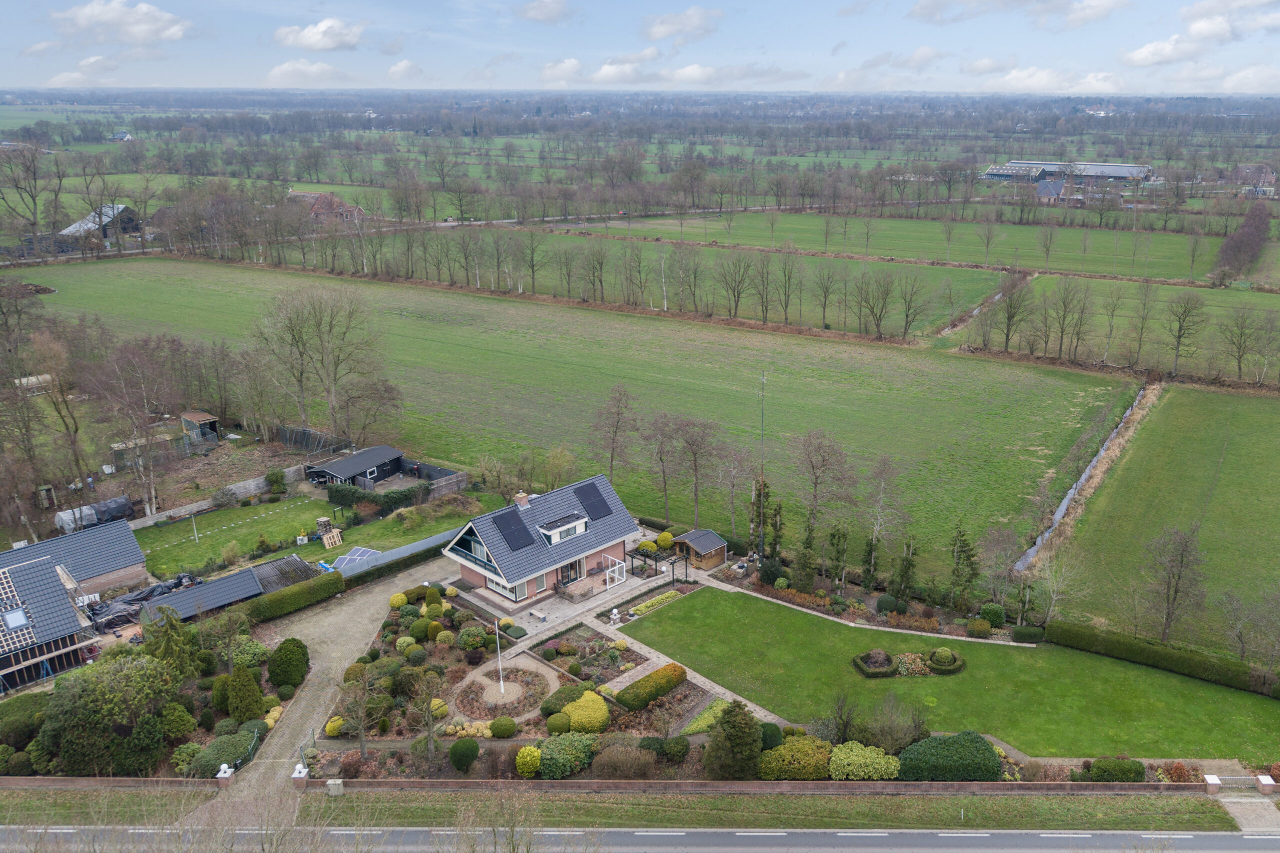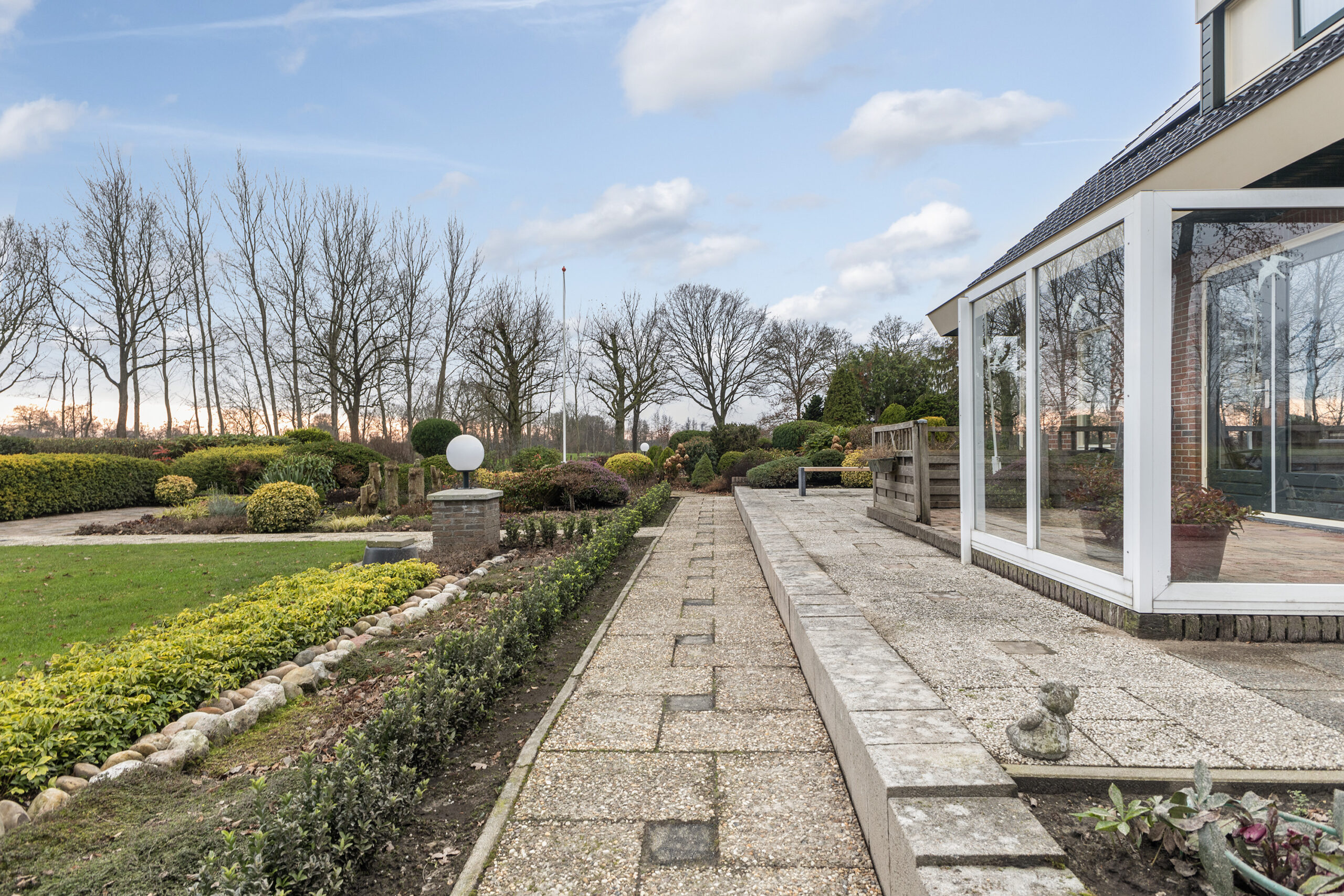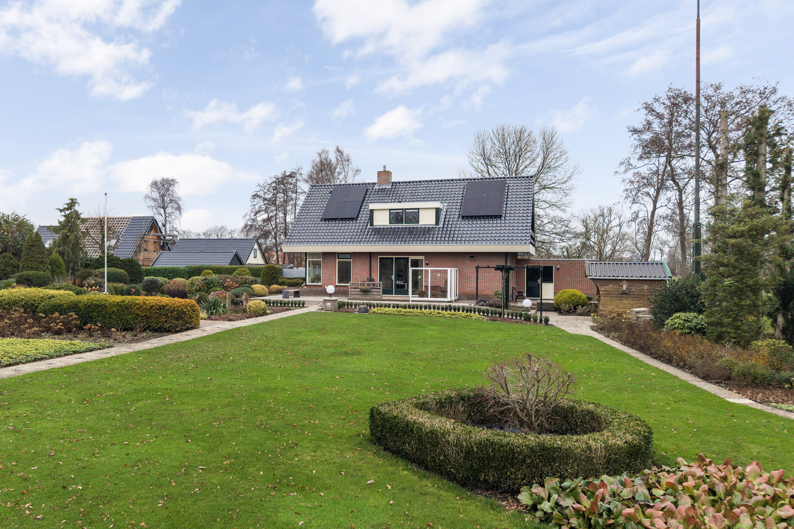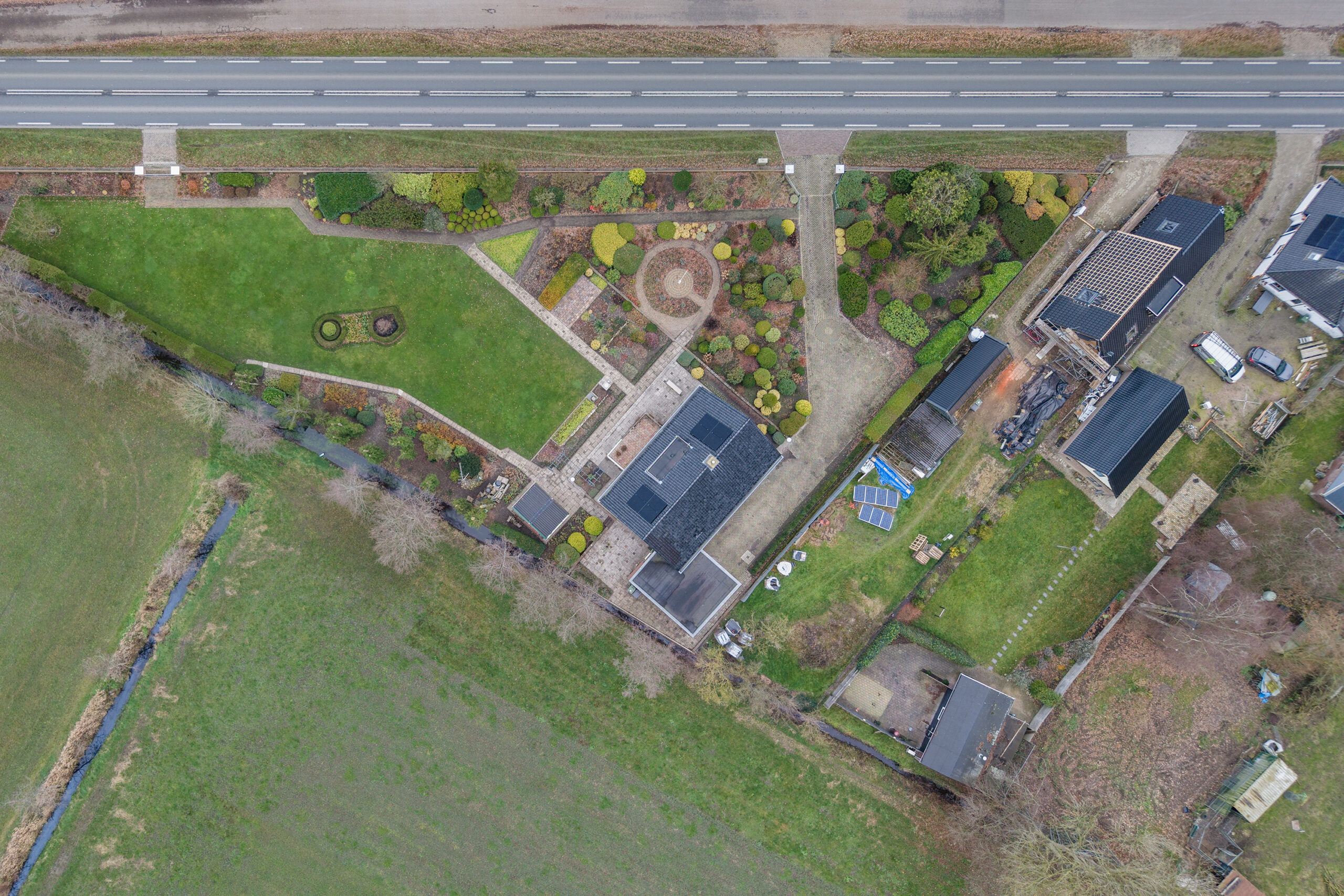 De fraai aangelegde tuin rondom de woning is voorzien van een houten tuinhuisje en meerdere terrassen. Hier geniet je elke dag van rust, ruimte en het vrije uitzicht.