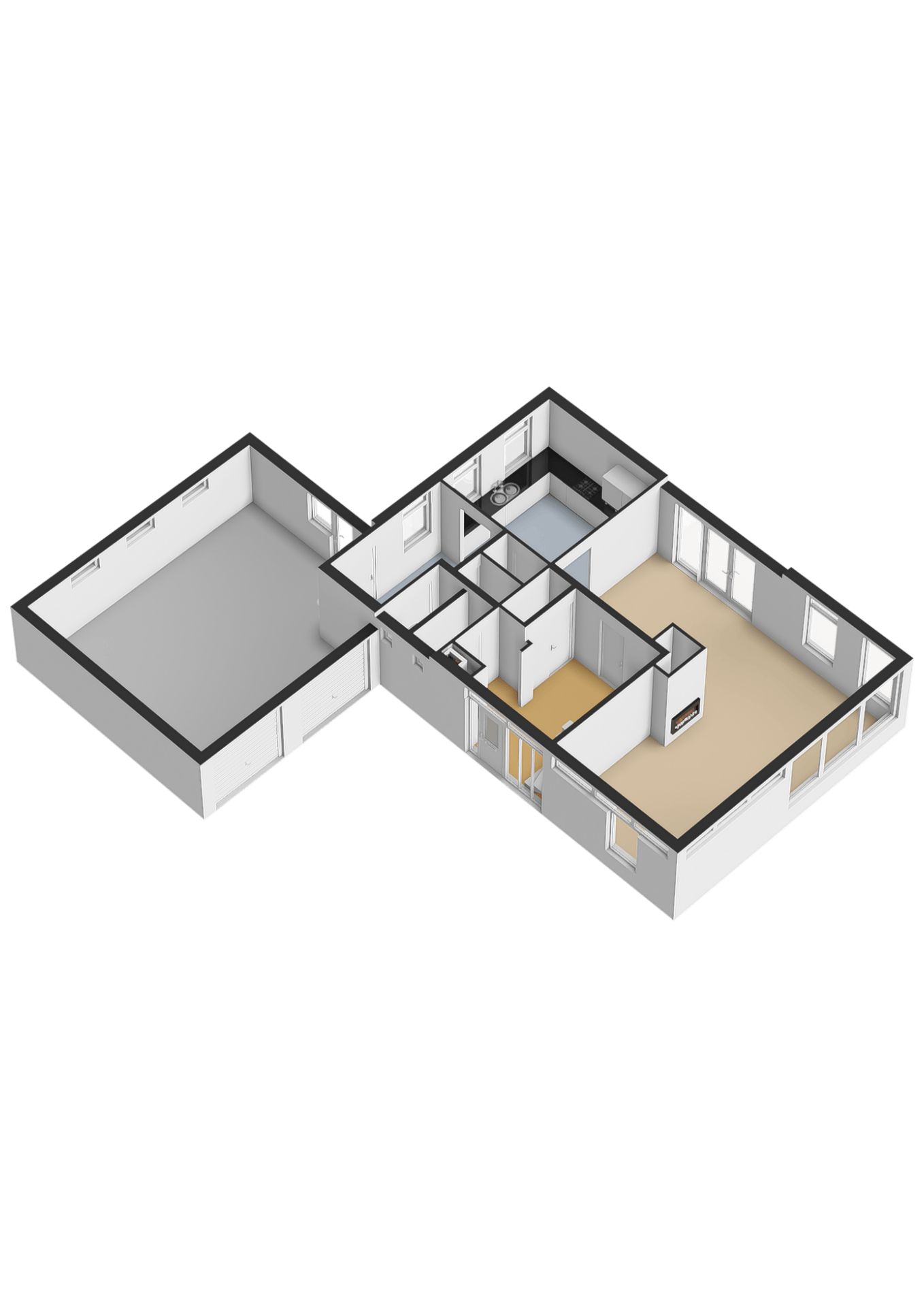 Daarnaast beschikt de woning over een dubbele garage, ideaal voor het stallen van auto’s of extra bergruimte.