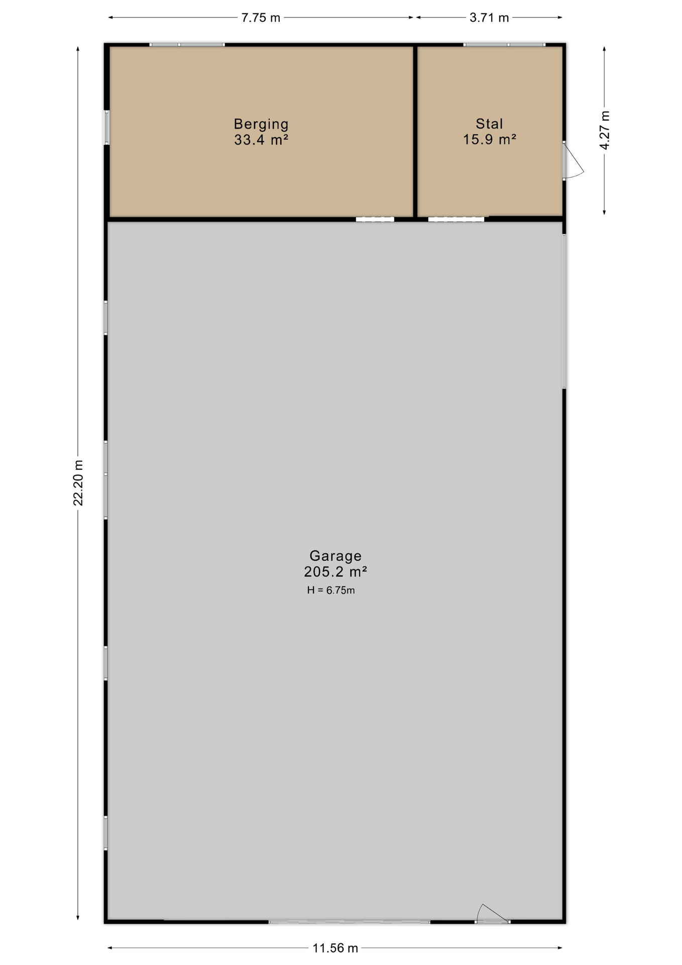 De vrijstaande loods van circa 256 m² is grotendeels vernieuwd en geïsoleerd, voorzien van kunststof kozijnen (HR++) en een vernieuwde meterkast met krachtstroom. Daarmee is deze ruimte geschikt voor uiteenlopende doeleinden, van opslag tot werken aan huis.