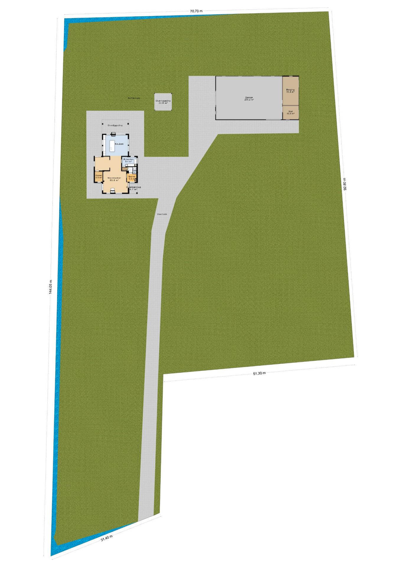 Het perceel van 9.195 m² biedt een uitzonderlijk gevoel van vrijheid en privacy. De oprijlaan, toegangspoort met intercom, camerafunctie en app-bediening en de aanwezige verlichting onderstrepen het verzorgde geheel.