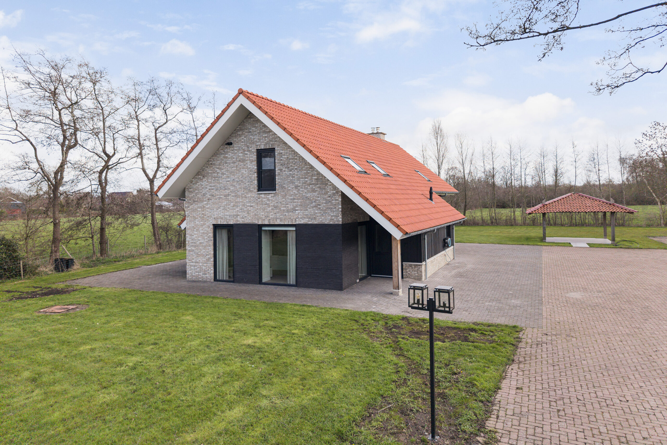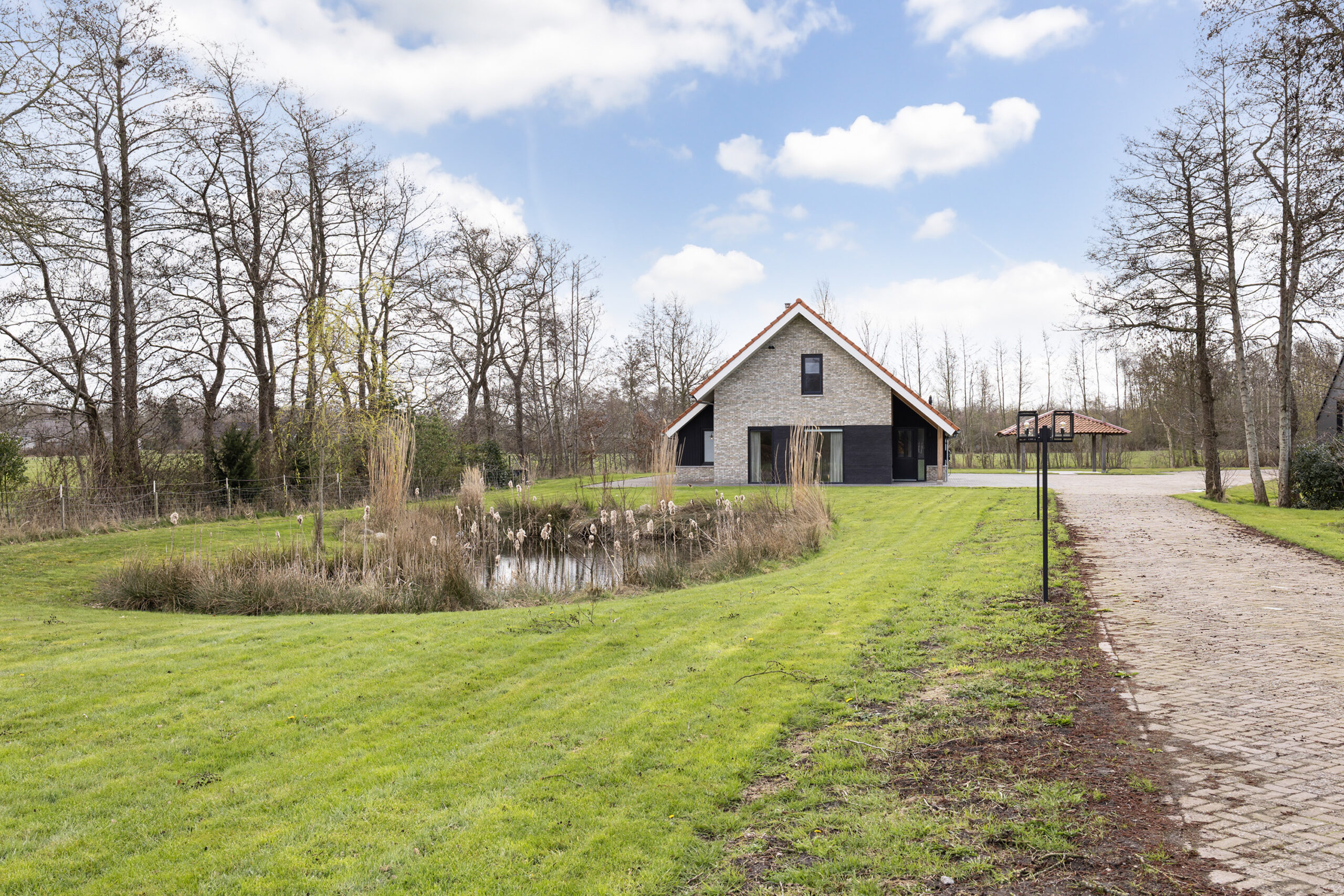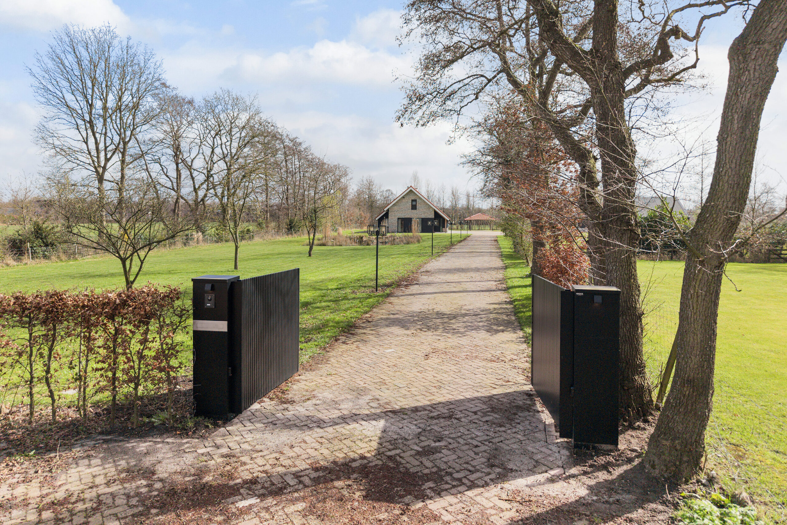 Het perceel van 9.195 m² biedt een uitzonderlijk gevoel van vrijheid en privacy. De oprijlaan, toegangspoort met intercom, camerafunctie en app-bediening en de aanwezige verlichting onderstrepen het verzorgde geheel.