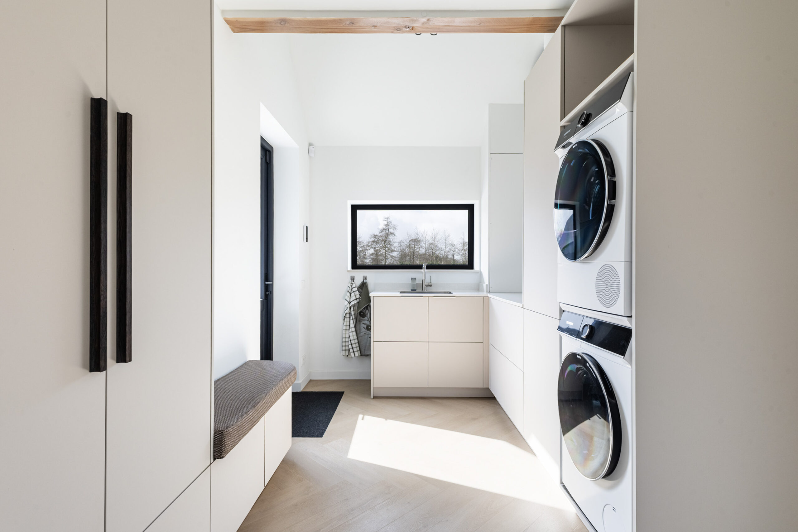 De bijkeuken is volledig vernieuwd en uitgevoerd in dezelfde hoogwaardige stijl als de rest van de woning. Praktisch, maar met dezelfde afwerkingsgraad.