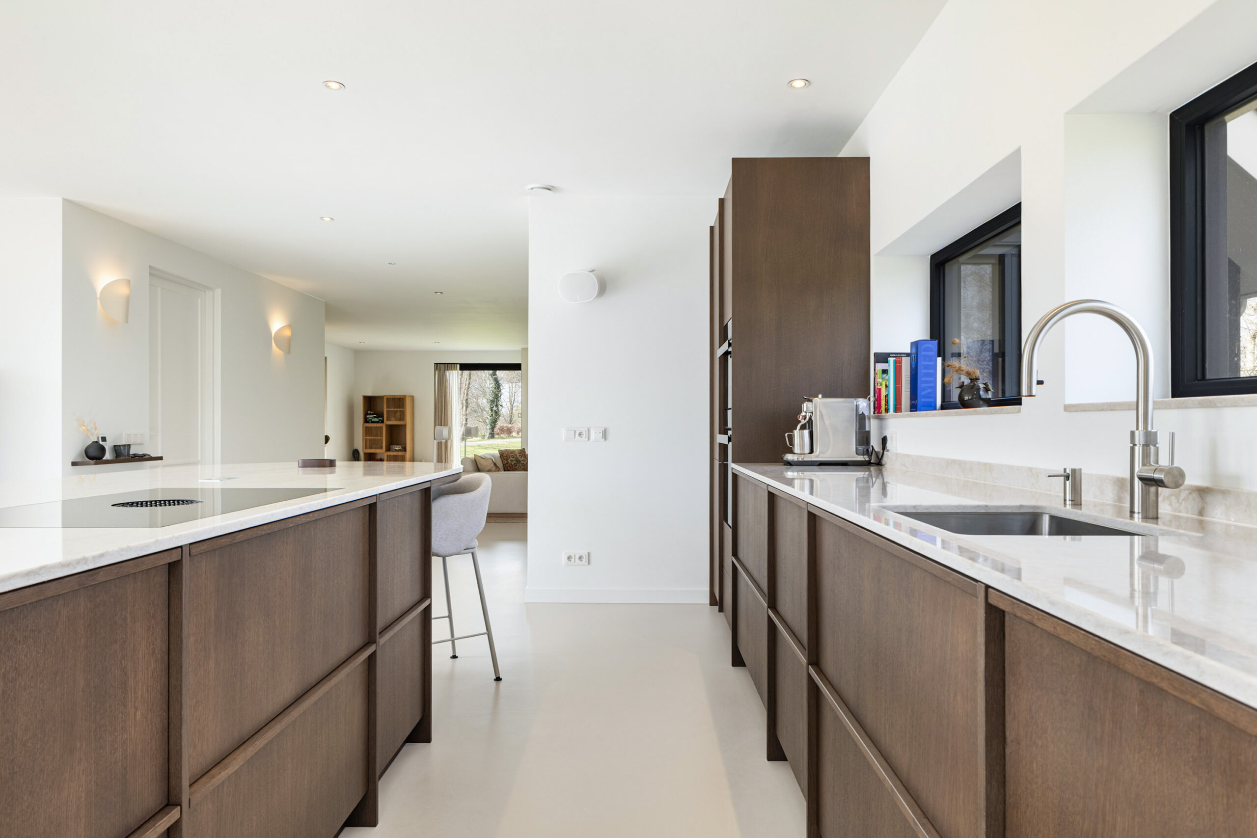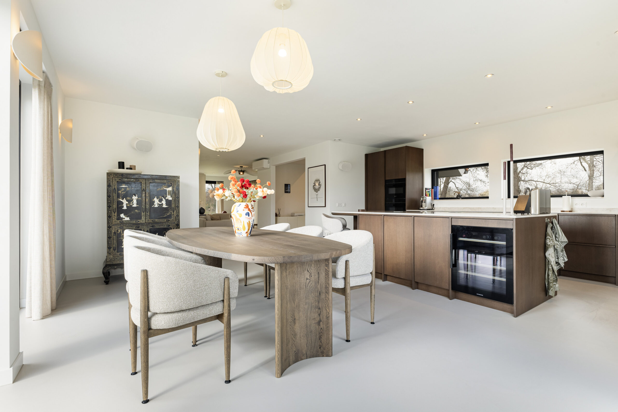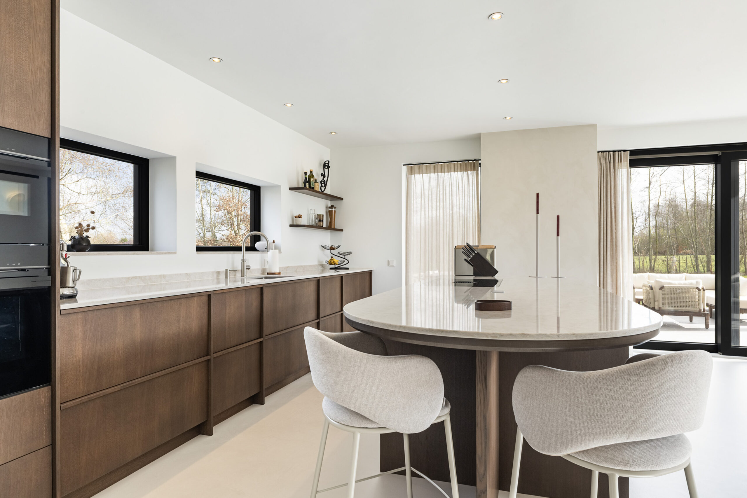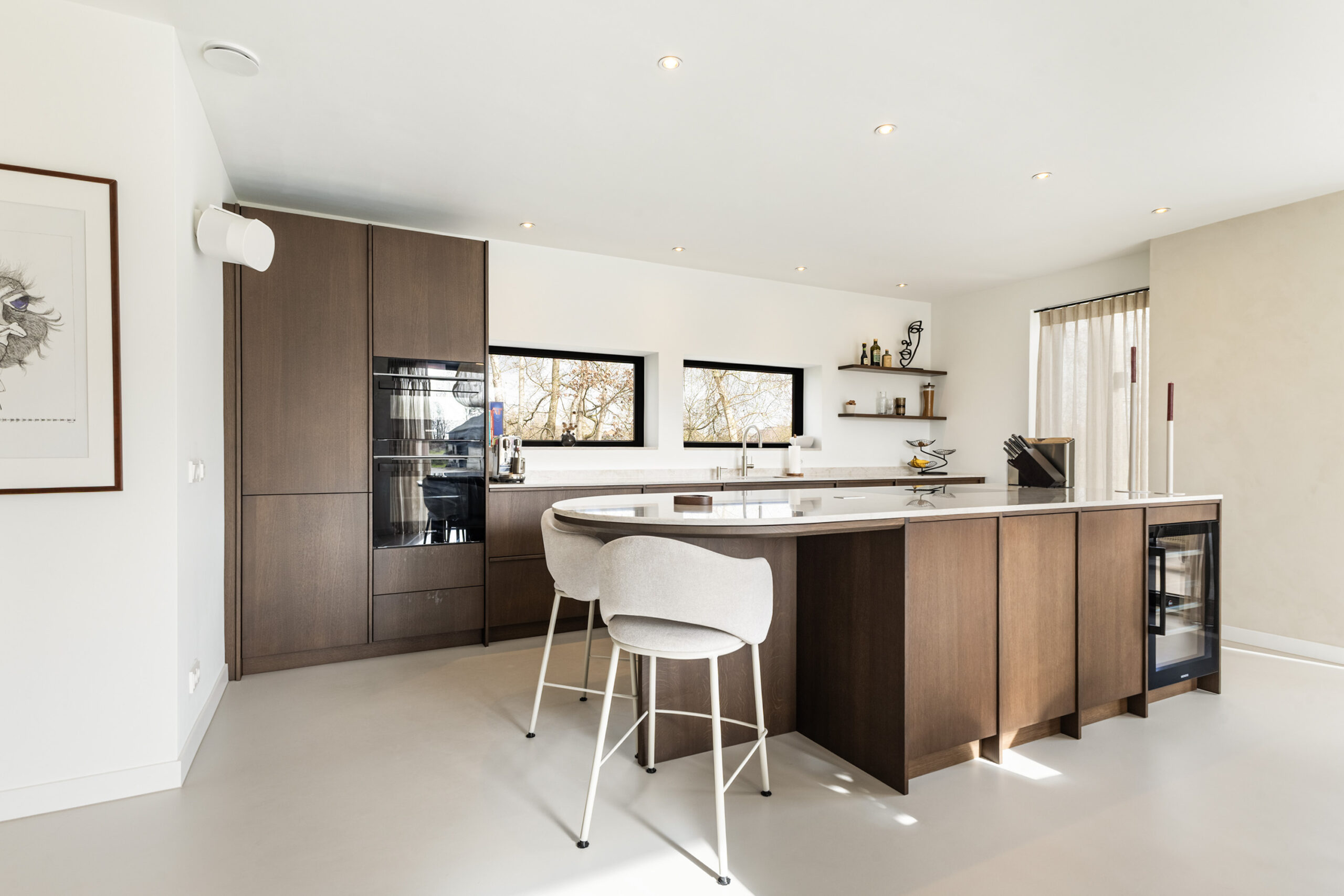 De keuken is in 2025 geplaatst en uitgevoerd met apparatuur uit de Siemens IQ700-serie en een Bora kookopstelling met geïntegreerde afzuiging. Daarnaast beschikt de keuken over onder andere twee stoomovens, een wijnklimaatkast met twee zones en een Quooker. De opstelling is compleet en gericht op comfort en gebruiksgemak.