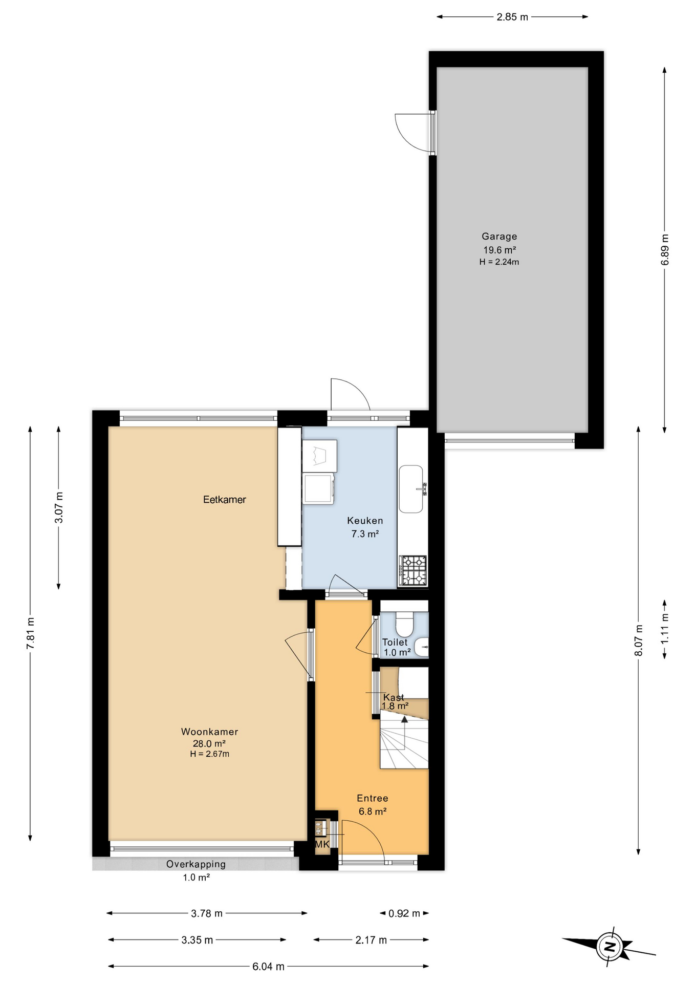 Via de entree kom je in de ruime hal met meterkast, provisiekast, toilet met fonteintje en de trapopgang naar de eerste verdieping. Vanuit de hal bereik je de lichte woonkamer, die dankzij de grote raampartijen profiteert van veel daglicht. De halfopen keuken sluit aan op de woonkamer en biedt directe toegang tot de achtertuin.