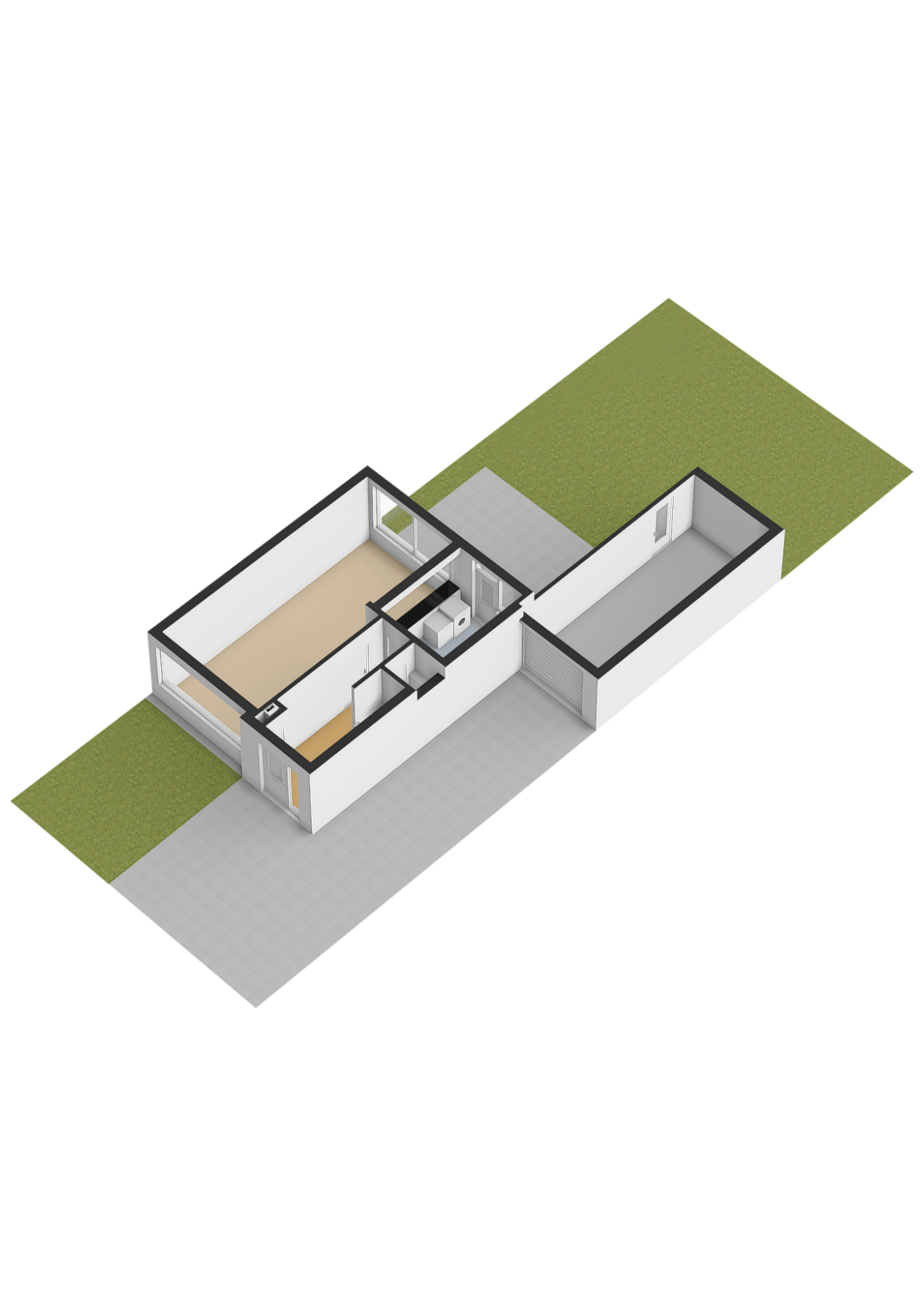 De achtertuin is netjes aangelegd en voorzien van een combinatie van gazon en terras. Daarnaast beschikt de woning over een eigen oprit met garage.