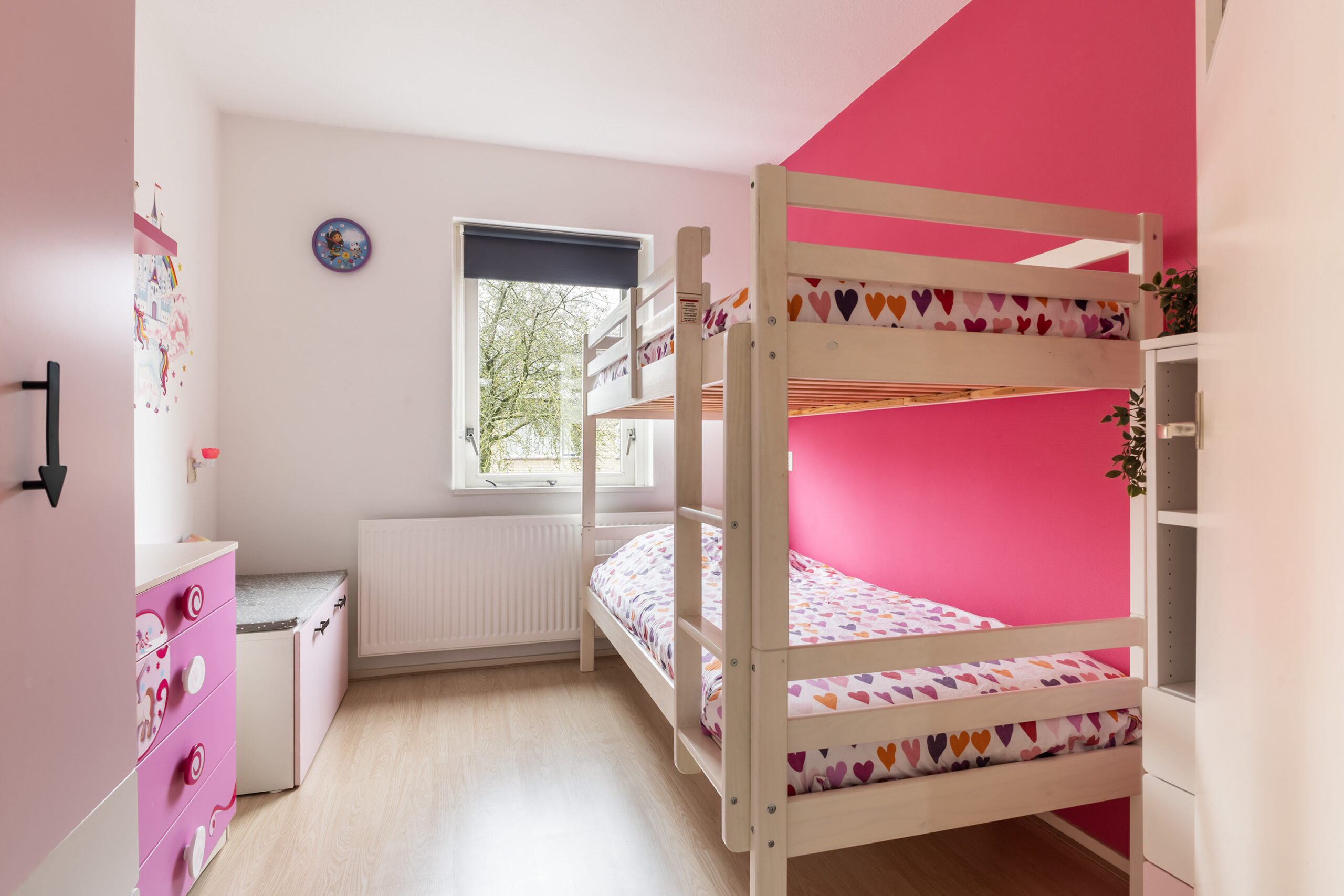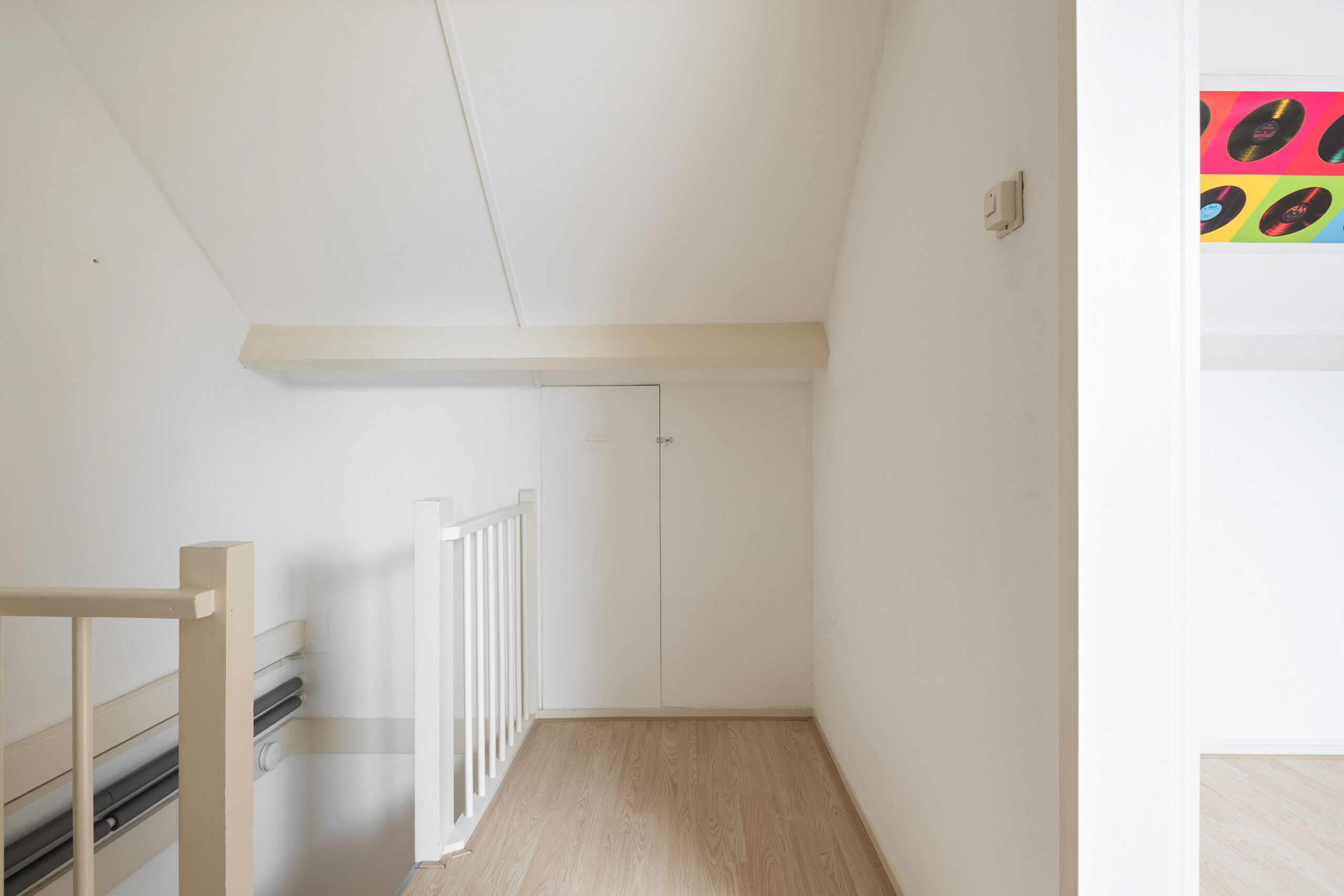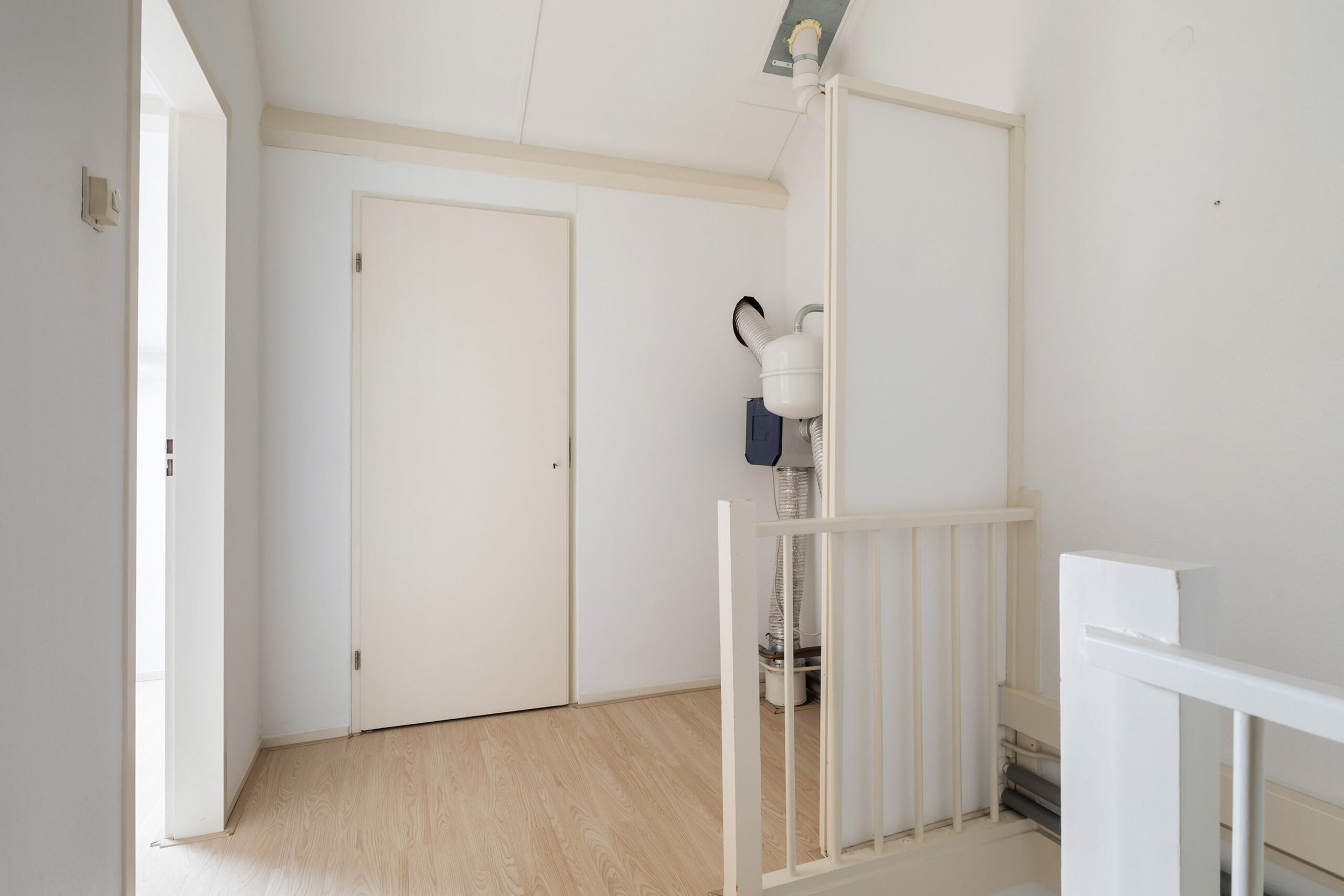De tweede verdieping, bereikbaar via vaste trap, biedt een overloop met extra bergruimte en een vierde slaapkamer. Dankzij het dakraam is dit een volwaardige en lichte kamer.