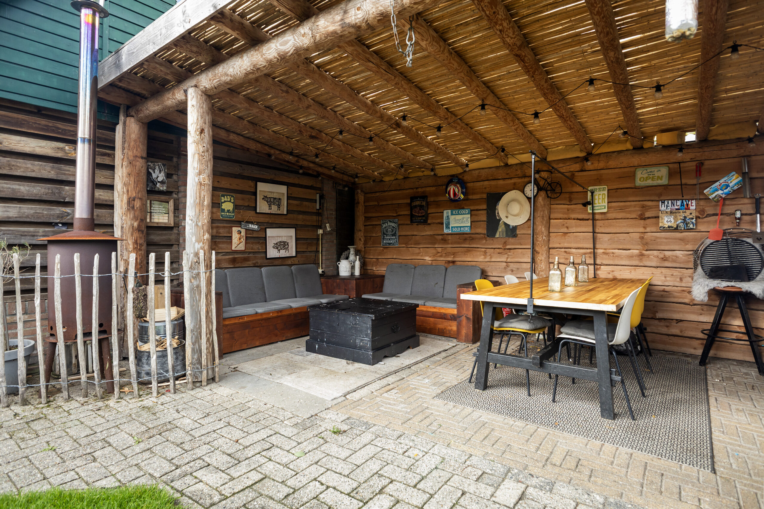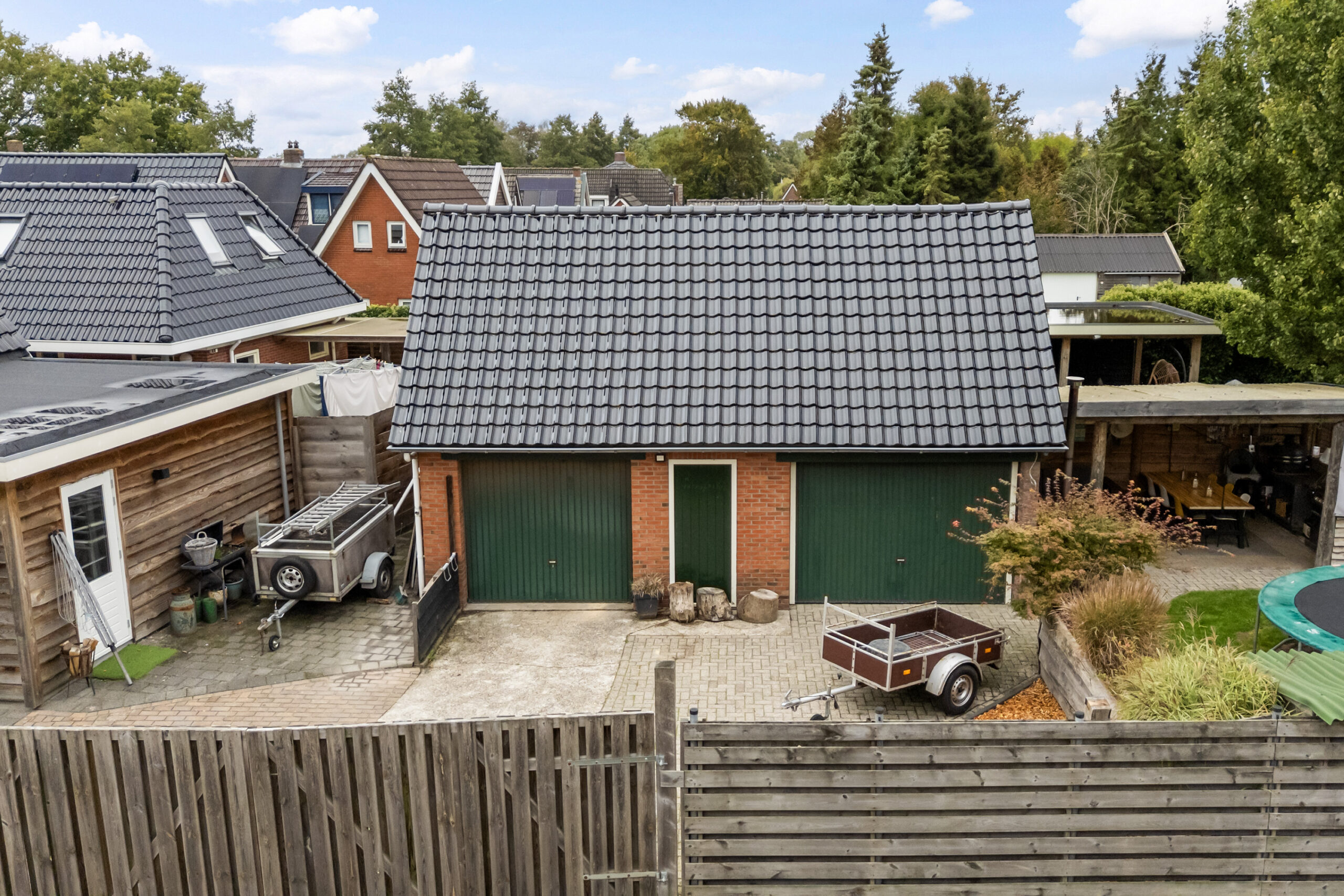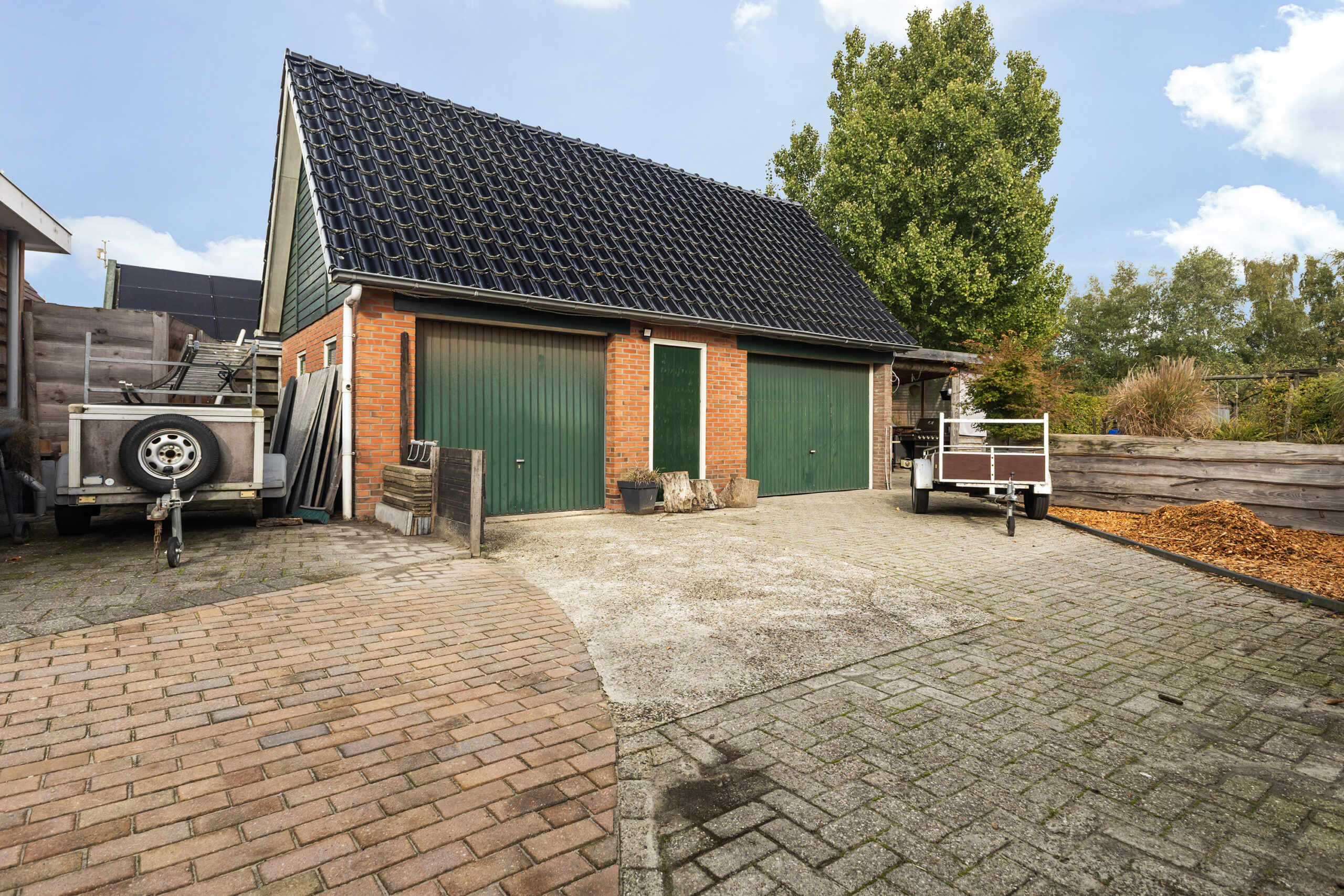 Daarnaast beschikt de woning over een dubbele stenen garage met een zolderverdieping — ideaal voor opslag, hobbyruimte of een werkplek. Onder de ruime overkapping kun je heerlijk buiten zitten en genieten van het uitzicht op de tuin.