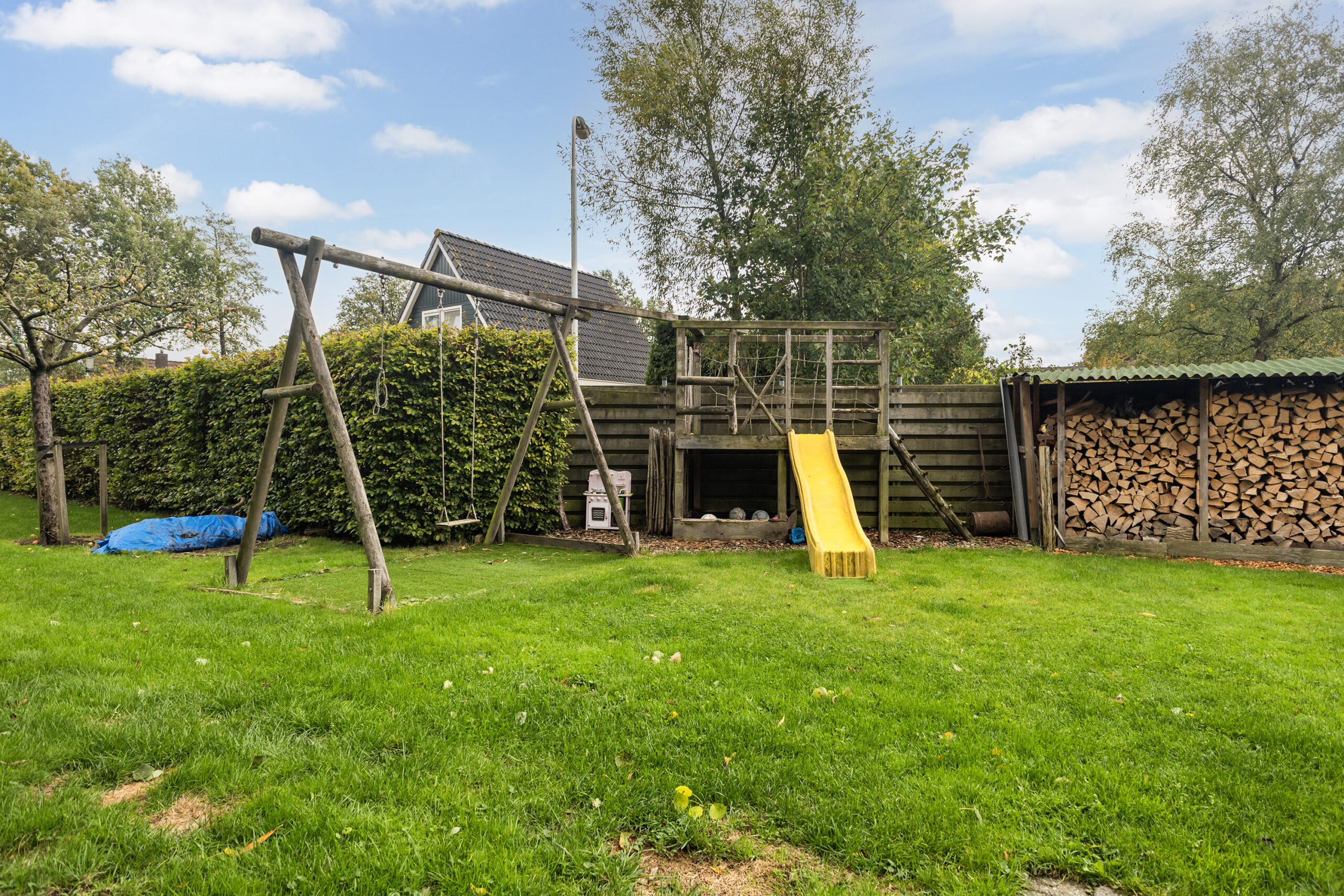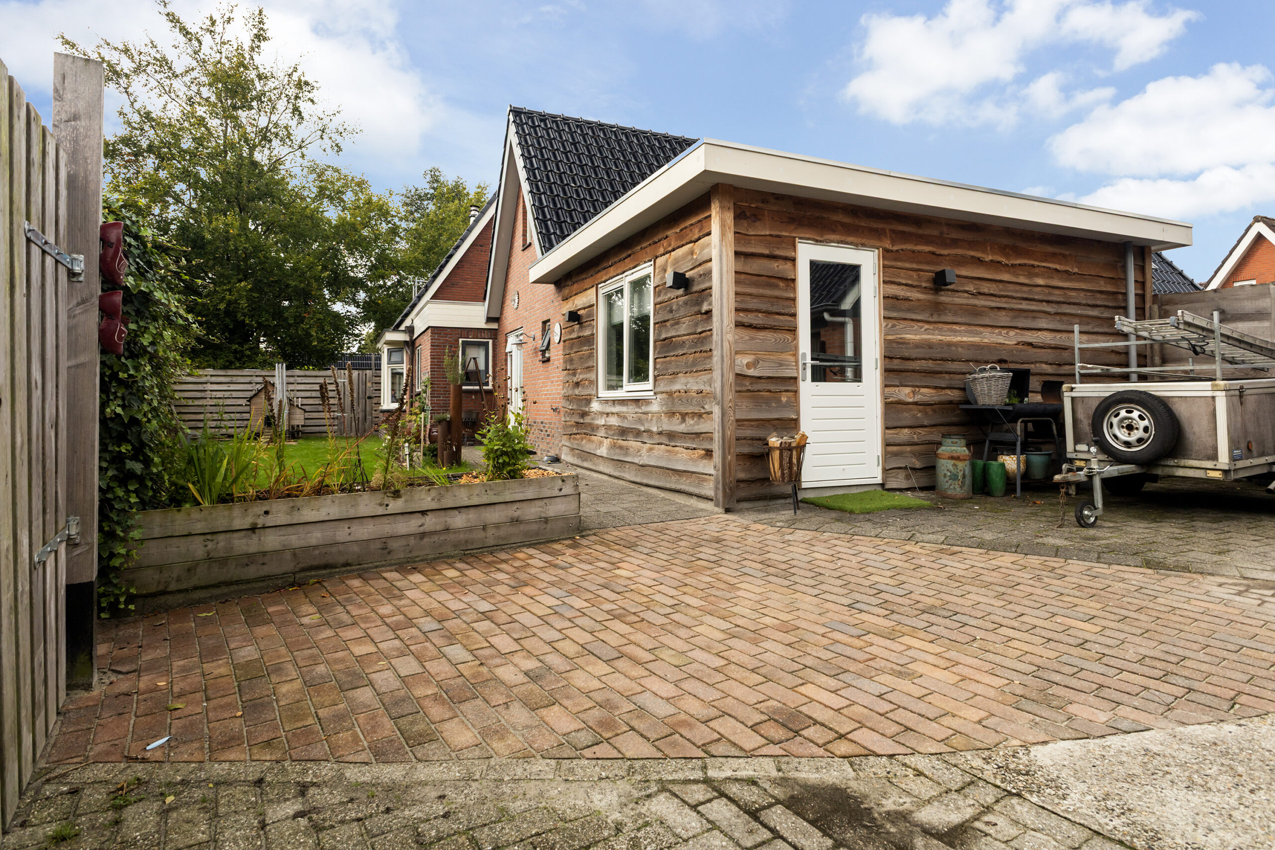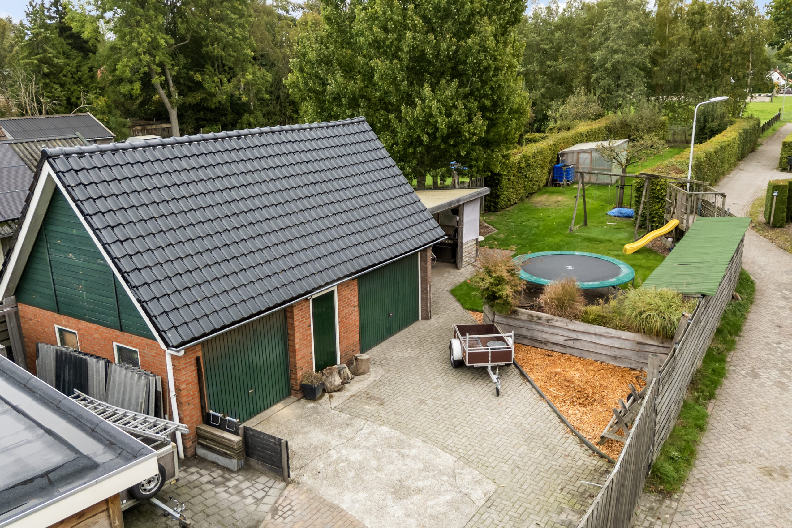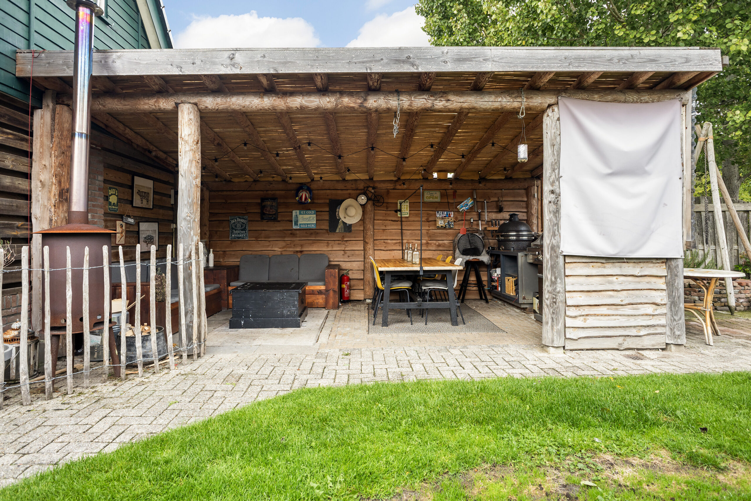 Daarnaast beschikt de woning over een dubbele stenen garage met een zolderverdieping — ideaal voor opslag, hobbyruimte of een werkplek. Onder de ruime overkapping kun je heerlijk buiten zitten en genieten van het uitzicht op de tuin.